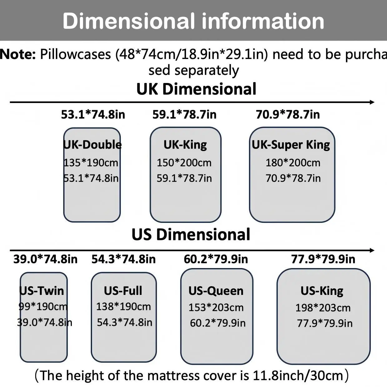 I bought a king size and it came with full size pillow cases. Why? It's for a king size bed... And king size pillows. Also the sheet is NOT deep at all. Will not fit most King beds.