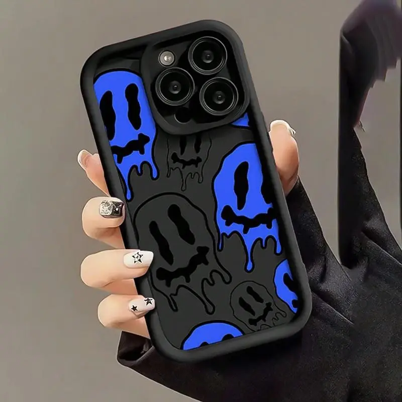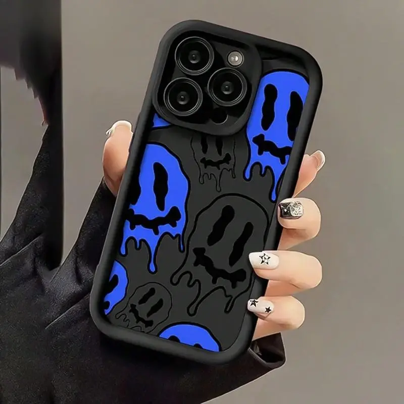 5. Cartoon joyful Face Pattern Mobile Phone Case Black Anti-Fall Mobile Phone Case Full Lens Cover/Simple/Anti-Fall/ Phone Cases Suitable for IPhone17,16, 15, 14, 13, 12, 11,pro Promax Plus Air Protective Protection Protector Smartphone