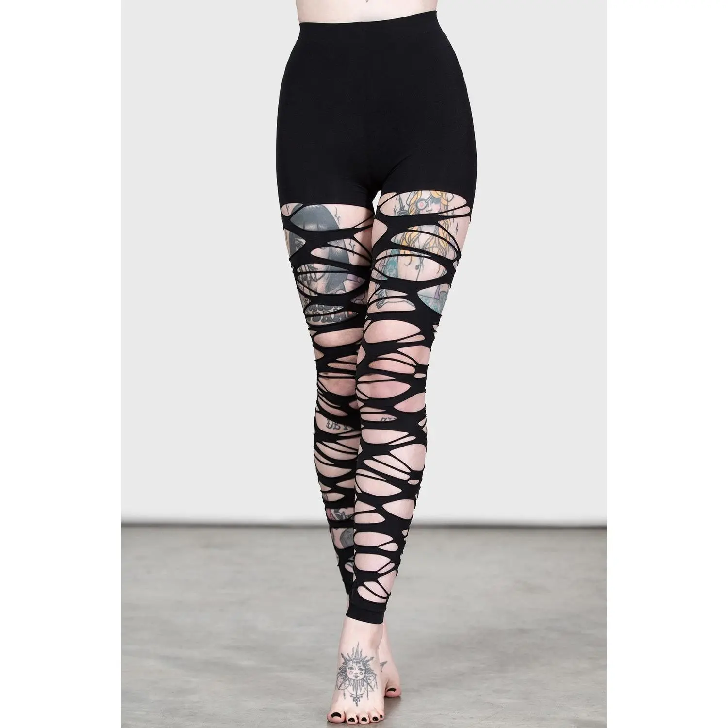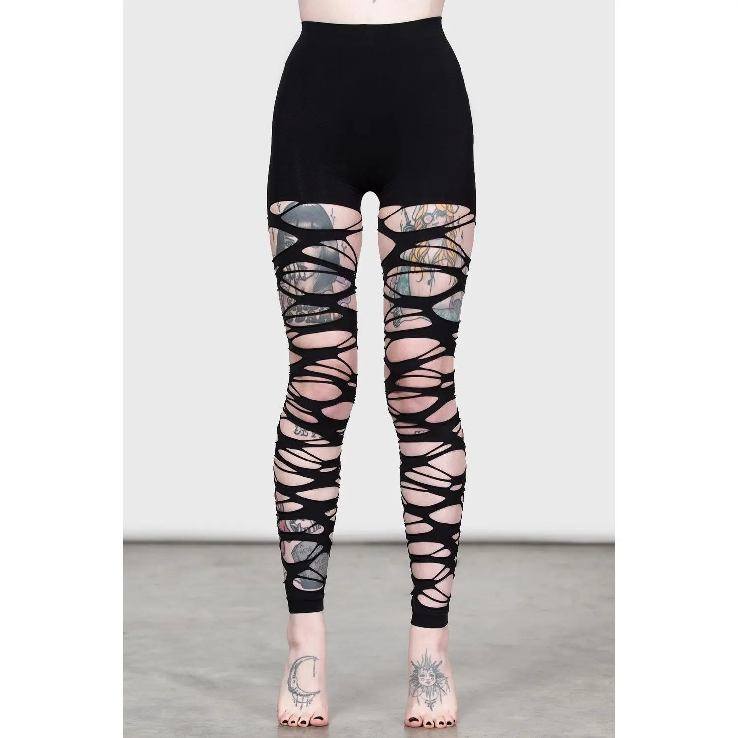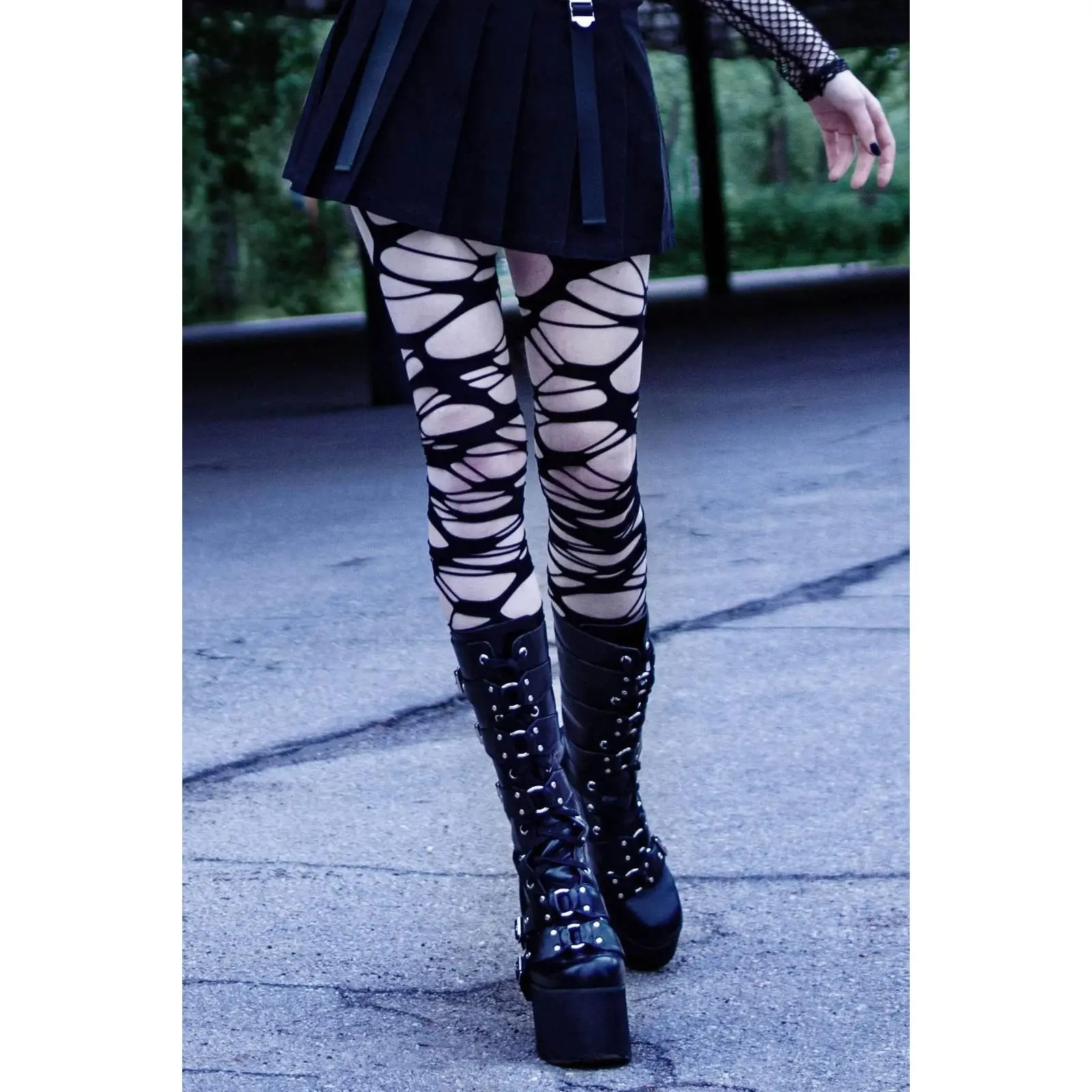 Cue creepy murder music. Be apocalypse ready any day of the week with the 'Carved Up' tights - super soft and stretchy, black opaque with statement slashes all over - perfect for your black-on-black wardrobe!