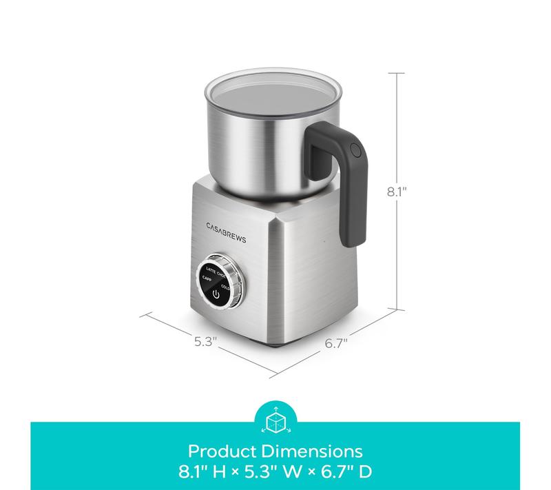 Starting your morning with cafe-style lattes or frothy hot chocolate is easy with this heated milk frother. Its one-knob, four-preset design lets you choose your favorite drink -- whether you crave a creamy cappuccino or silky cold froth -- with simple, mess-free cleanup. The clear view lid means you can watch your creations come to life right on your counter. From CASABREWS.