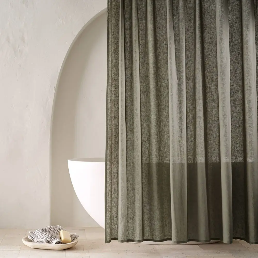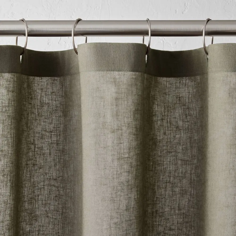 Refresh your bathroom with the modern elegance of this Linen Shower Curtain from Casaluna. Made from a soft fabric blend of cotton, linen and polyester, this woven shower curtain features a buttonhole top for easy installation and is machine washable for convenient cleaning. It's designed in a coastal gray shade, infusing a sophisticated charm while enhancing the privacy and style of your bathtub or shower stall.