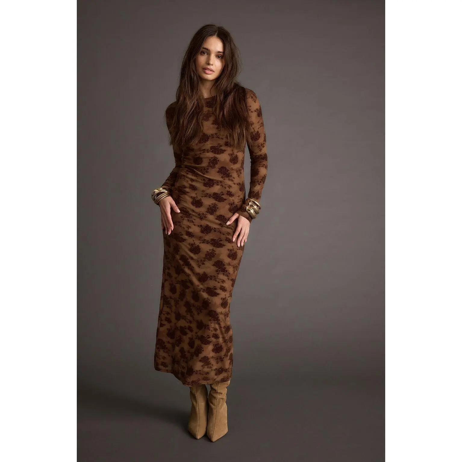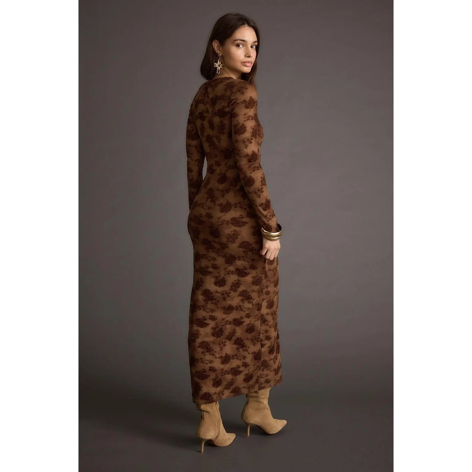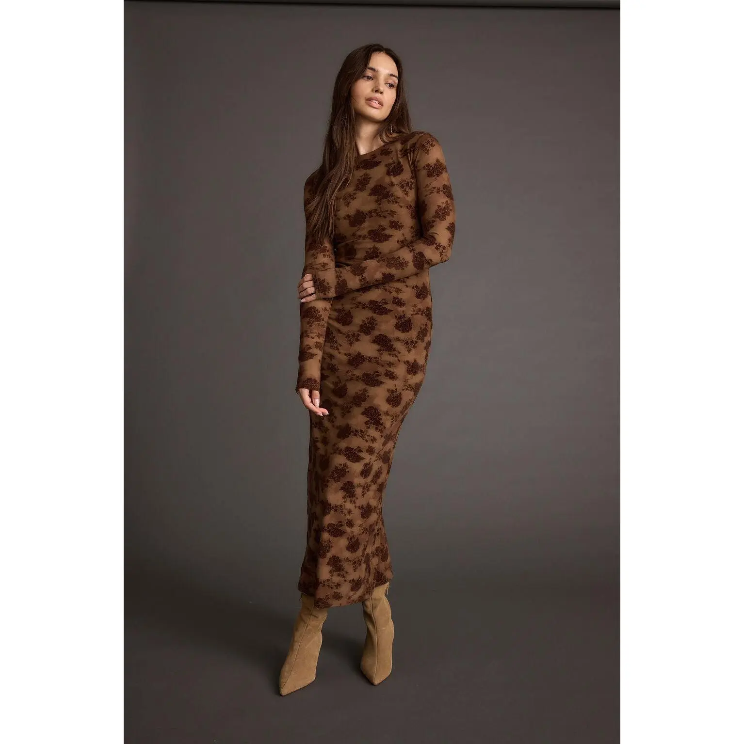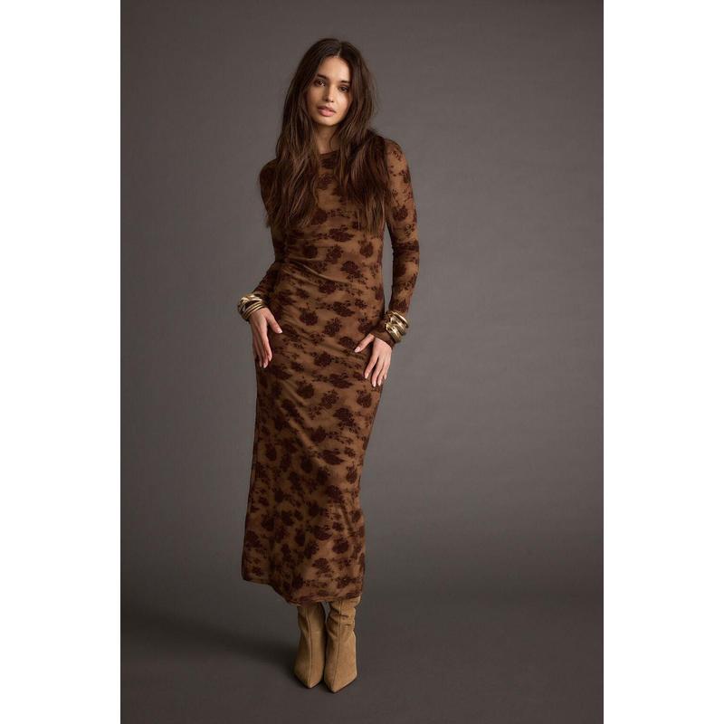 The Casanova Brown Floral Mesh Maxi Dress is a best seller for a reason, and we love seeing all our tribe looking gorgeous! This head-to-toe stunner features a chocolate brown mesh material with floral velvet detailing.  Getting dressed and looking good has never been easier, this body skimming, long sleeve, mesh maxi will have you turning heads.