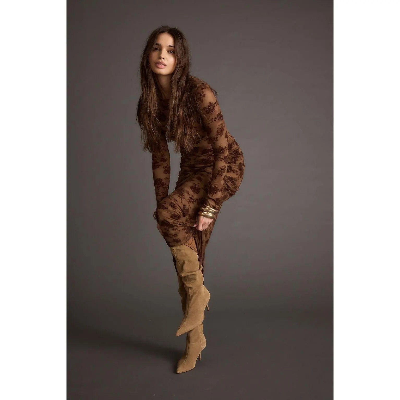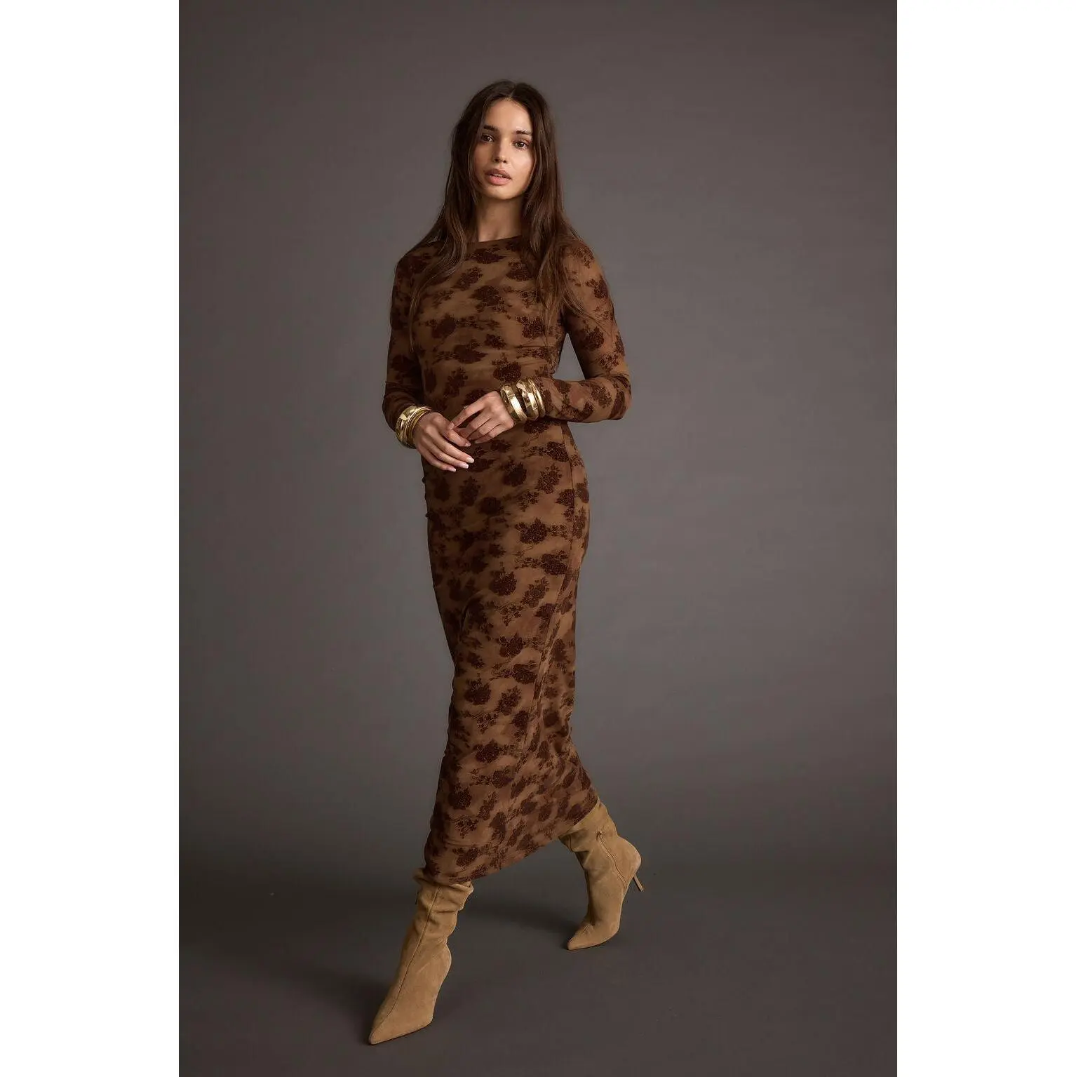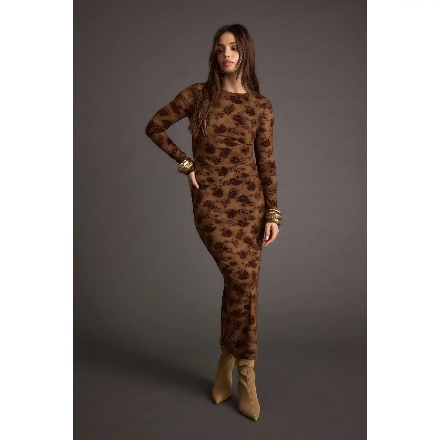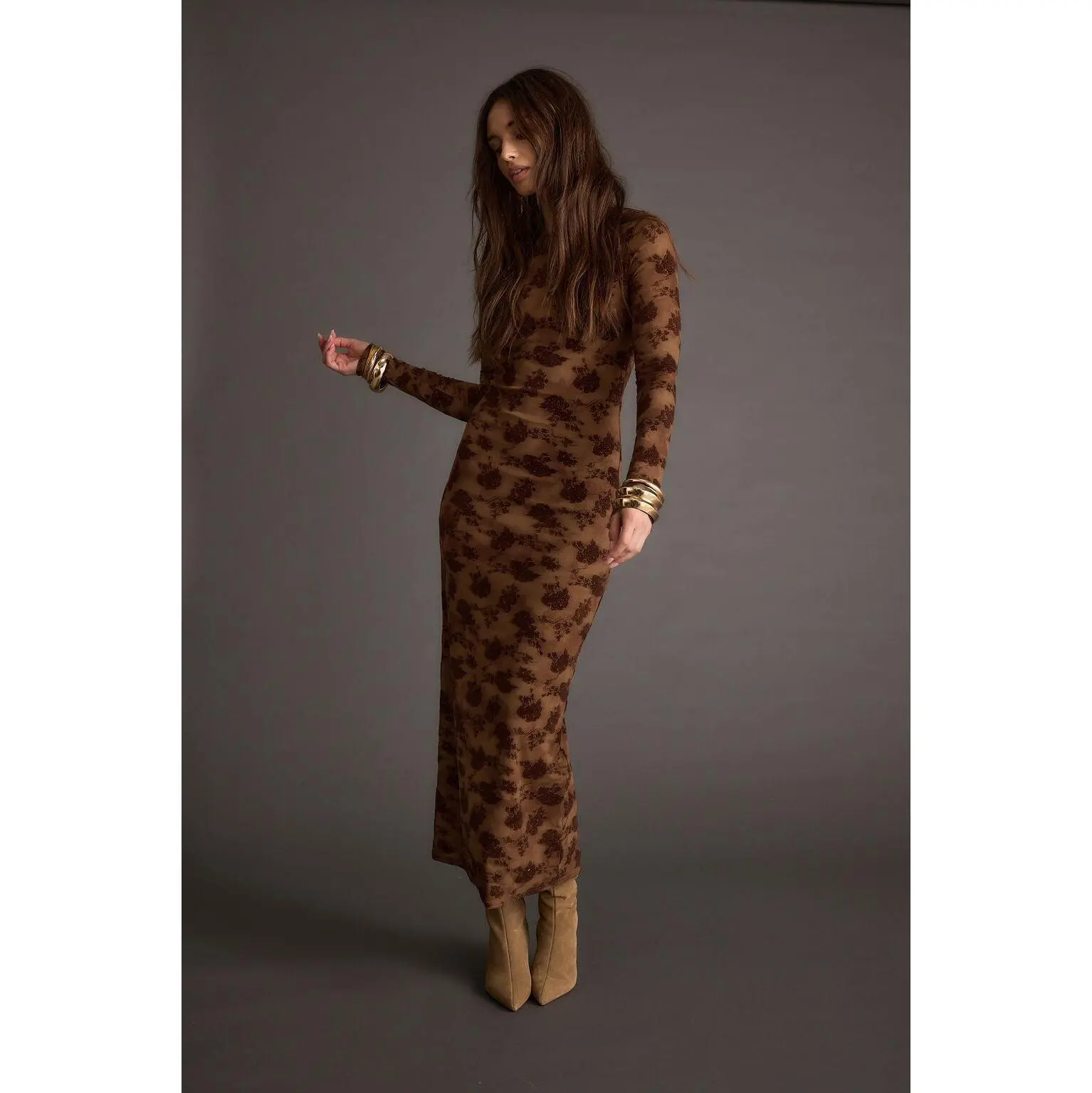 The Casanova Brown Floral Mesh Maxi Dress is a best seller for a reason, and we love seeing all our tribe looking gorgeous! This head-to-toe stunner features a chocolate brown mesh material with floral velvet detailing.  Getting dressed and looking good has never been easier, this body skimming, long sleeve, mesh maxi will have you turning heads.