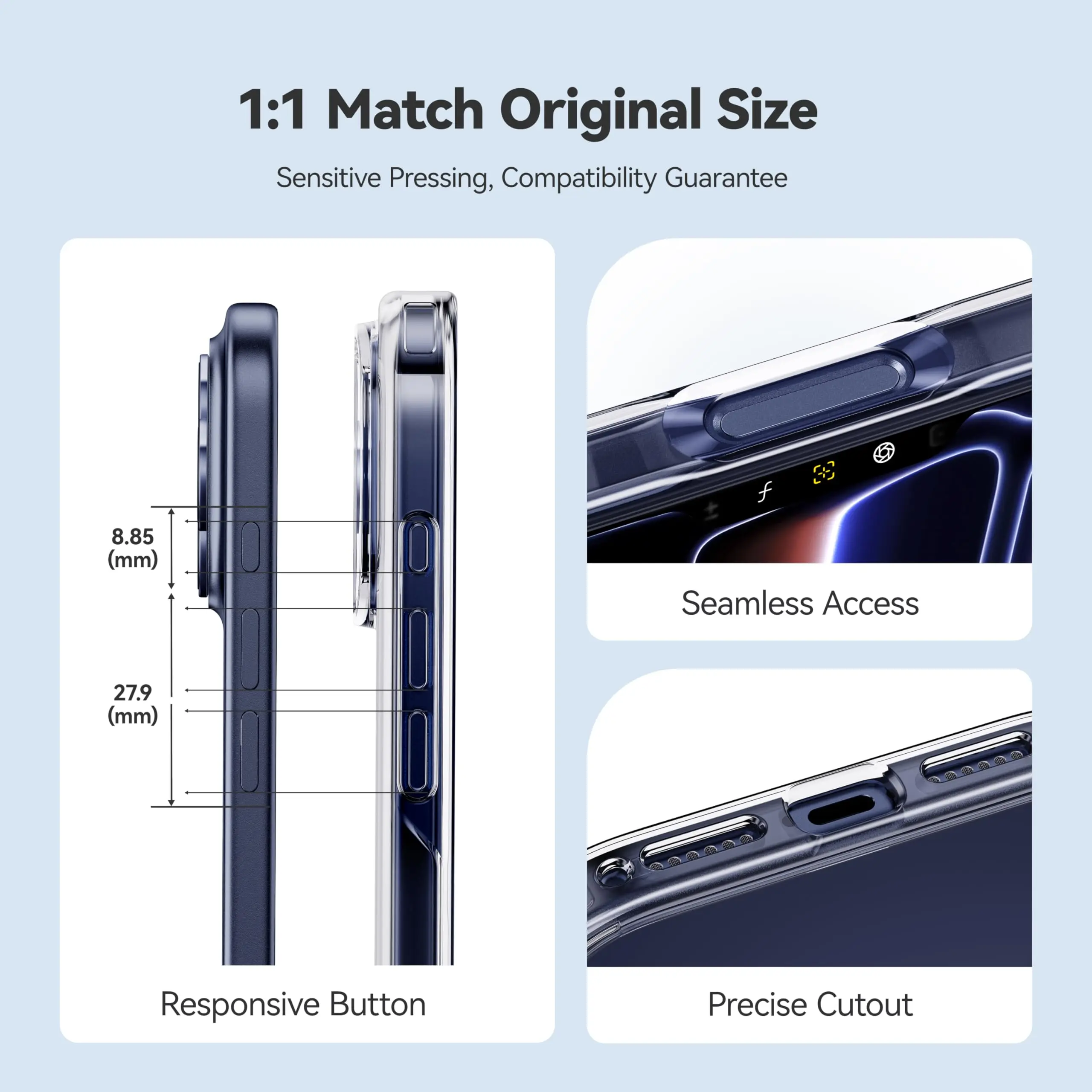 Excellent case—clear, stylish, and perfectly fits my iPhone 17 Pro. Precise cutouts, comfy grip, and sleek lens design for extra protection. Fast delivery, amazing customer service, and totally worth the price. Highly recommended if you’re looking for a clear case that’s thin yet protective.