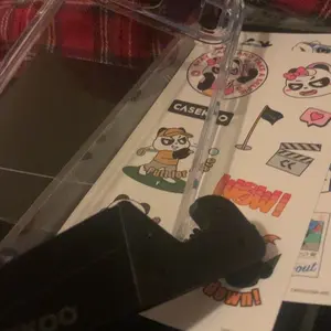 Came with a little black phone stand, and some stickers super cute shipping was super fast.