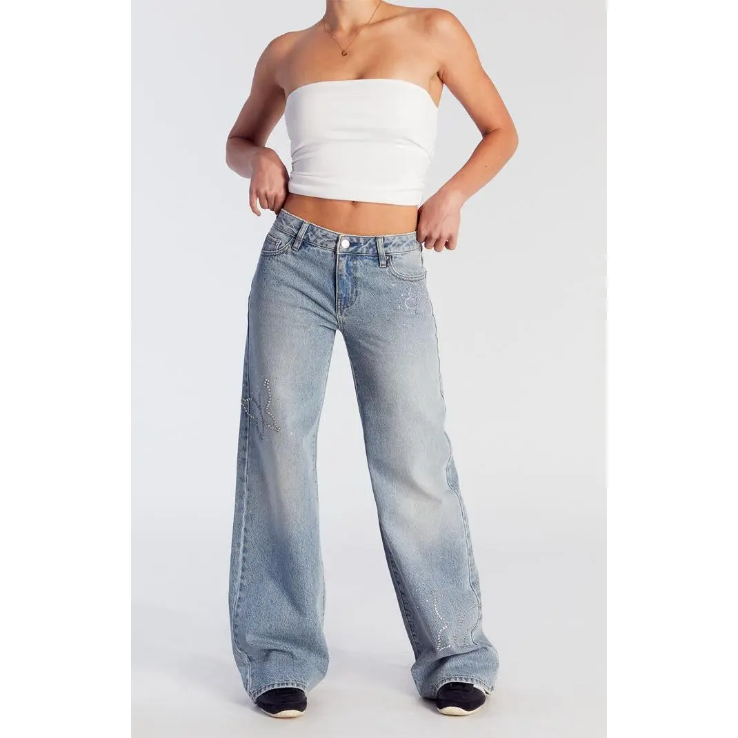These jeans are super cute and look just like the picture! They also are the perfect amount of low waisted and hit right under my belly button. I’m 5’9 and they’re the perfect length too! Picture is of the butterfly on the right thigh which is super high quality.