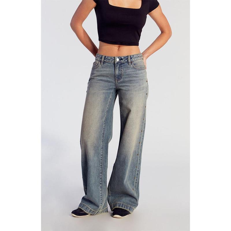Pacsun Women's Casey Low Rise Baggy Jeans Star Stud