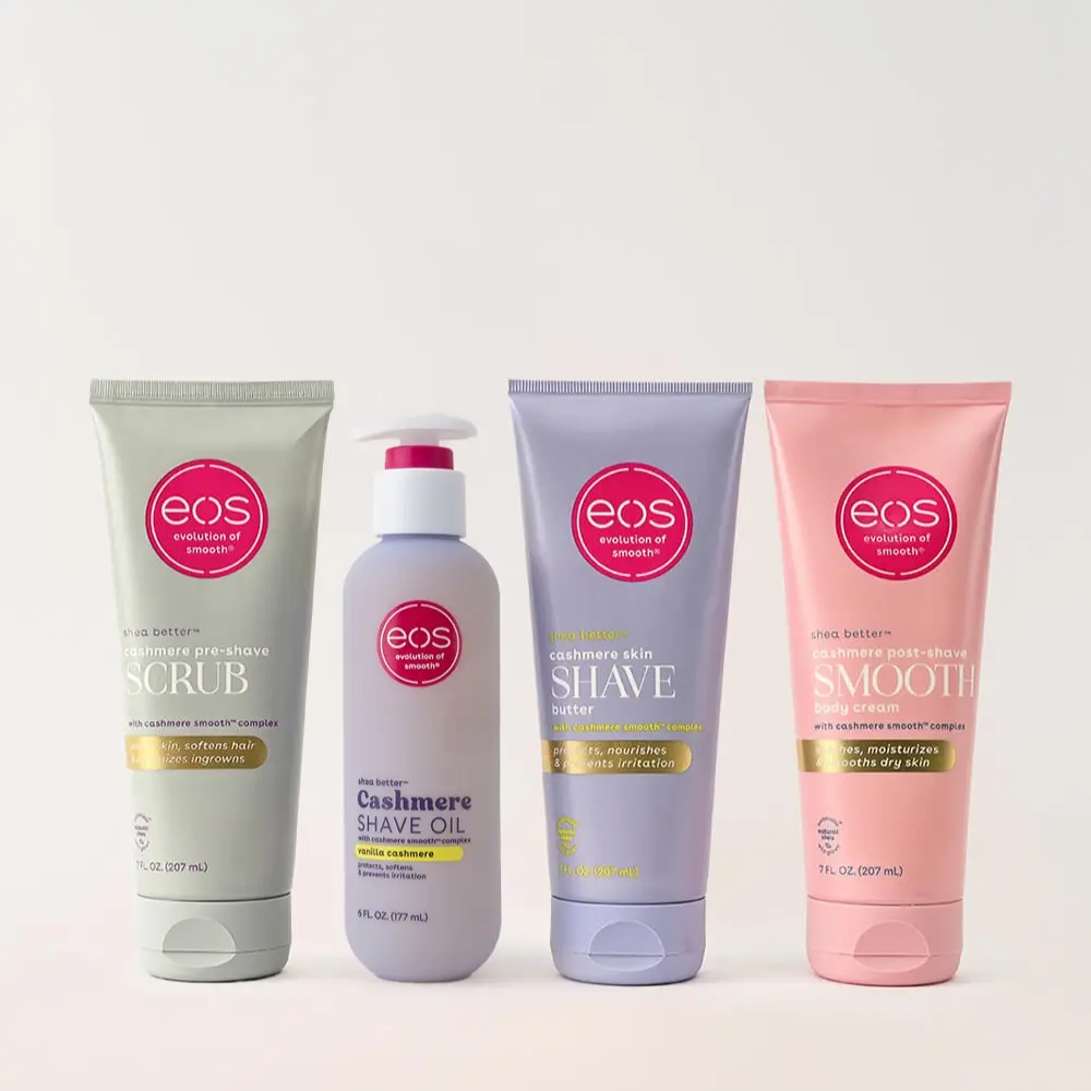 Your smoothest, softest skin starts here. The Cashmere 3-Step Shave Bundle includes everything you need for a full-body shave ritual: exfoliate with our Pre-Shave Scrub, cushion with your choice of Shave Oil or Shave Butter, and finish with the ultra-rich Body Cream. Powered by our signature Cashmere Smooth Complex, this routine deeply nourishes and hydrates skin before, during, and after shaving—leaving it silky, soothed, and cashmere-soft.