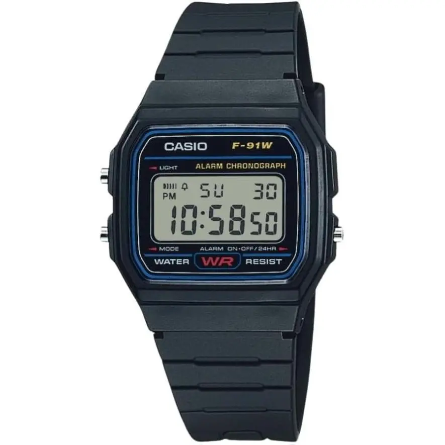 5. Casio F-91W Series Digital Watch Water Resistant LED Light 1/100 SEC Stopwatch 12/24-Hour Format Alarm Chronograph 7 Year Battery Life