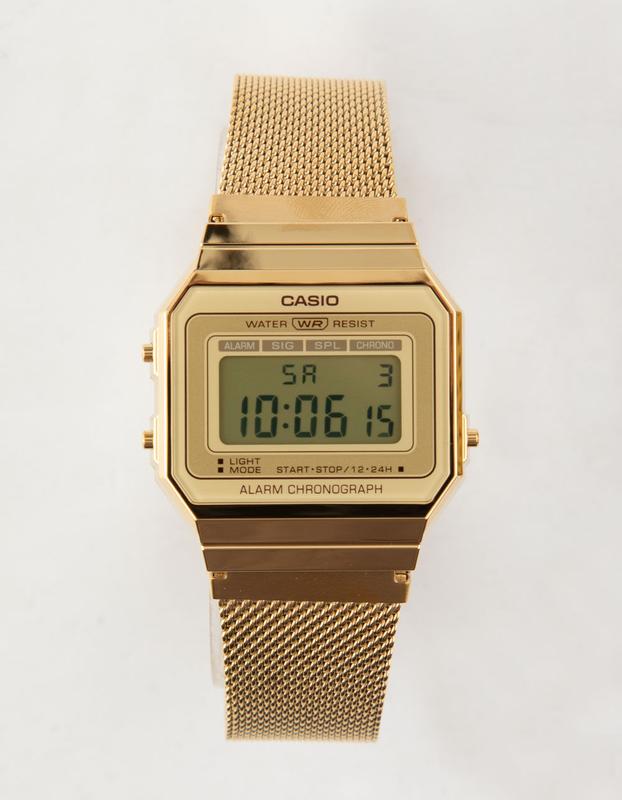 Casio Vintage A700WMG-9AVT Watch. Casio Vintage with mineral glass and milanese band. LED light and daily alarm. Milanese band. Mineral glass. 1/100 stopwatch (60 minutes). Auto calendar. Imported.