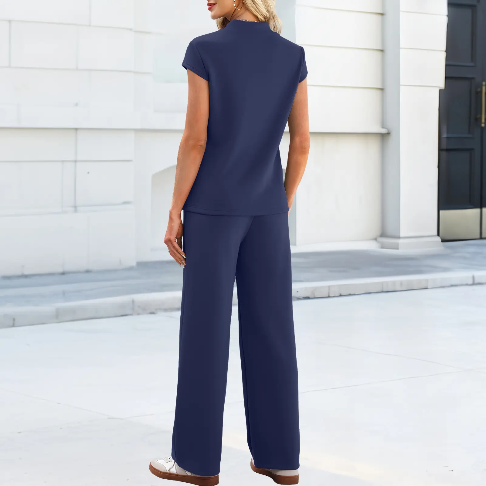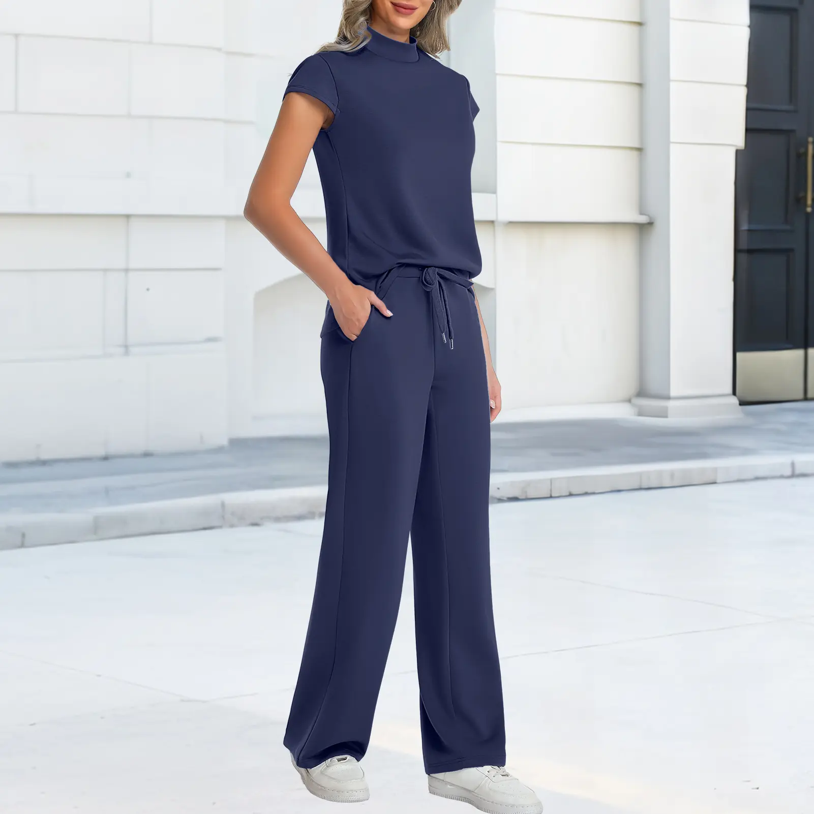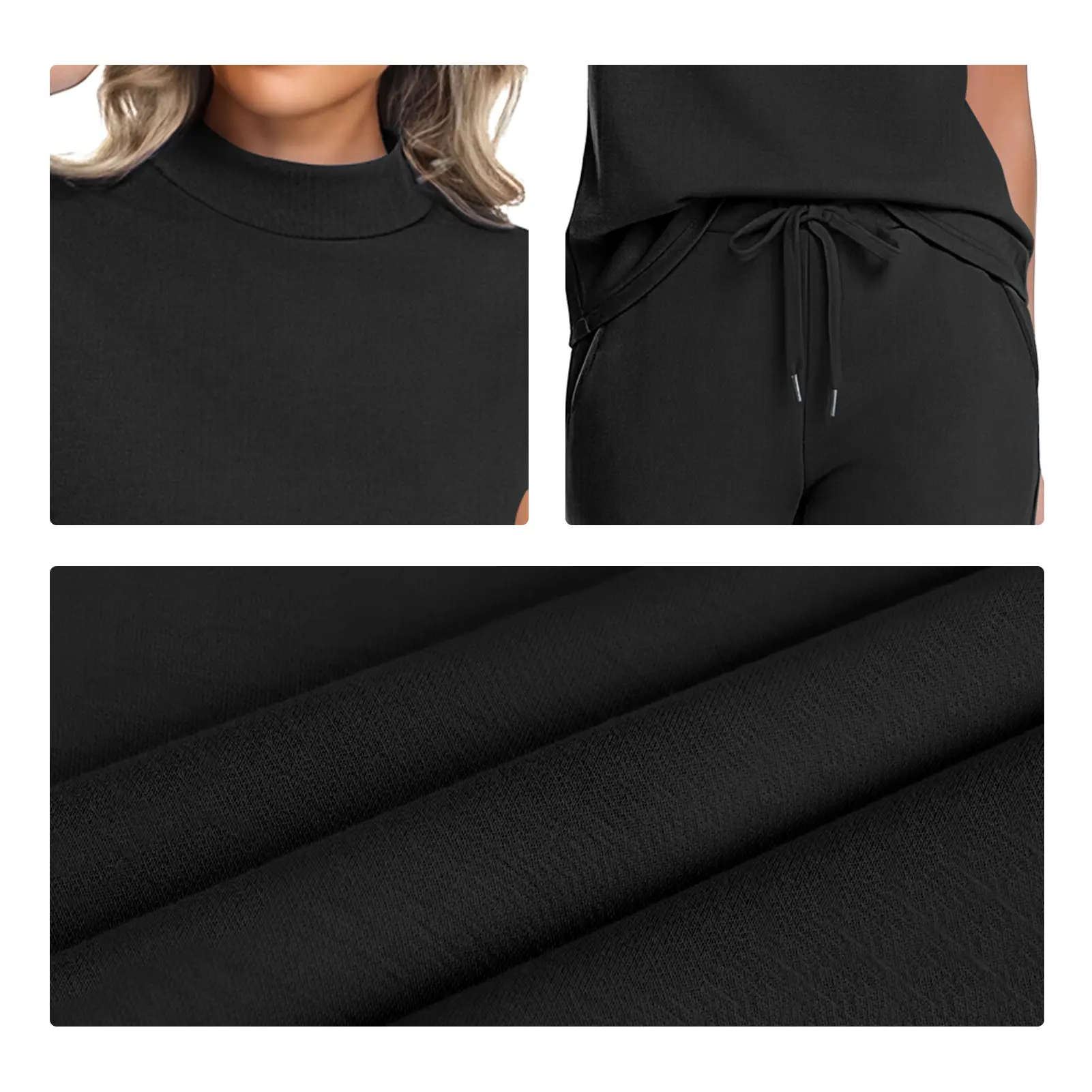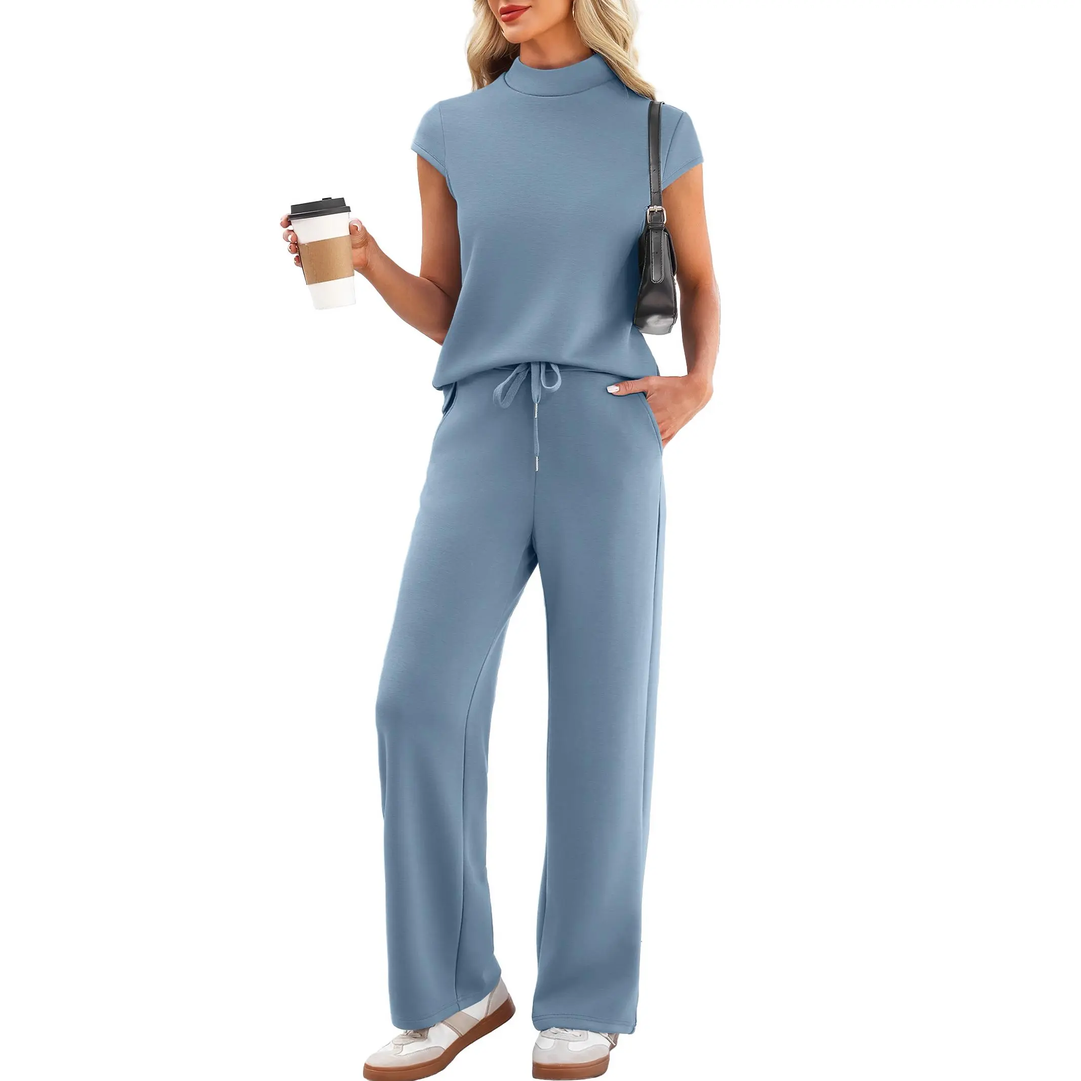 ·Modern Style: The two piece pants set for women boast mock neck cap sleeve top, pairing with wide leg pants with drawstring and slant pockets, blending polish with ease. The stylish and practical design elevate this womens summer sets