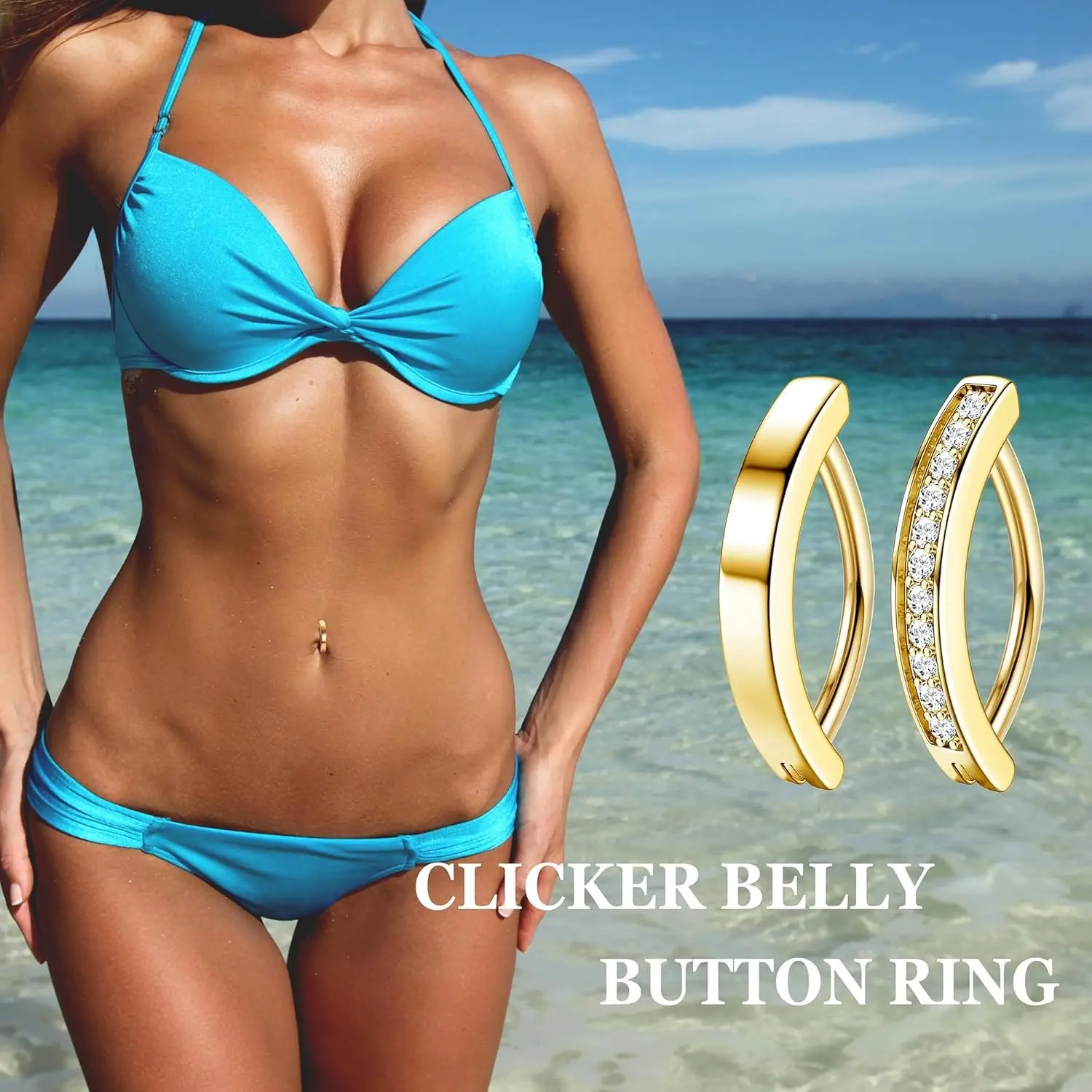 Clear CZ Clicker Belly Rings for Women  CZ Opal Belly Rings Simple Reverse Navel Rings Belly Piercing Body Jewelry#bellybutton #bellybuttons #fypdongggggggg #goldjewelry #belly