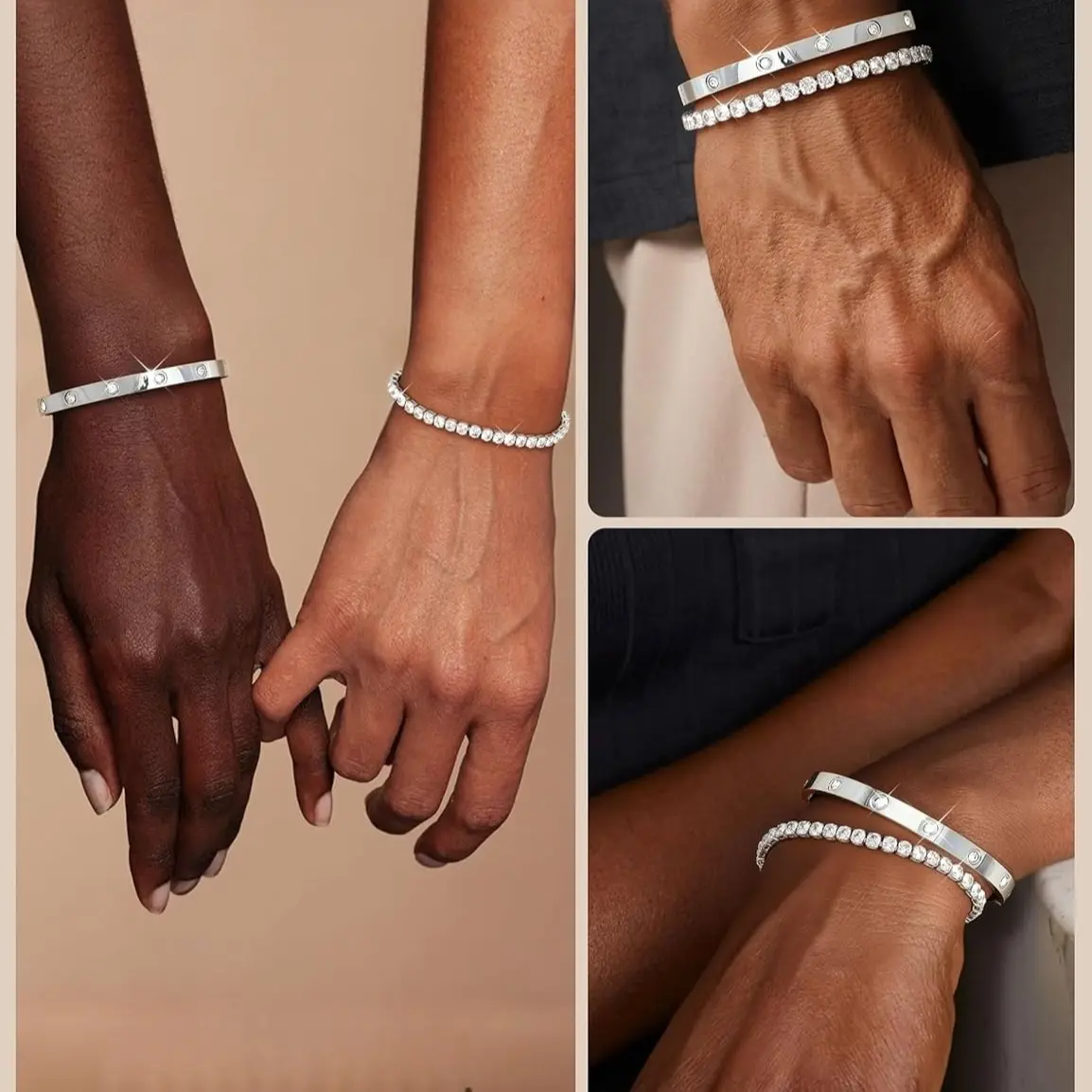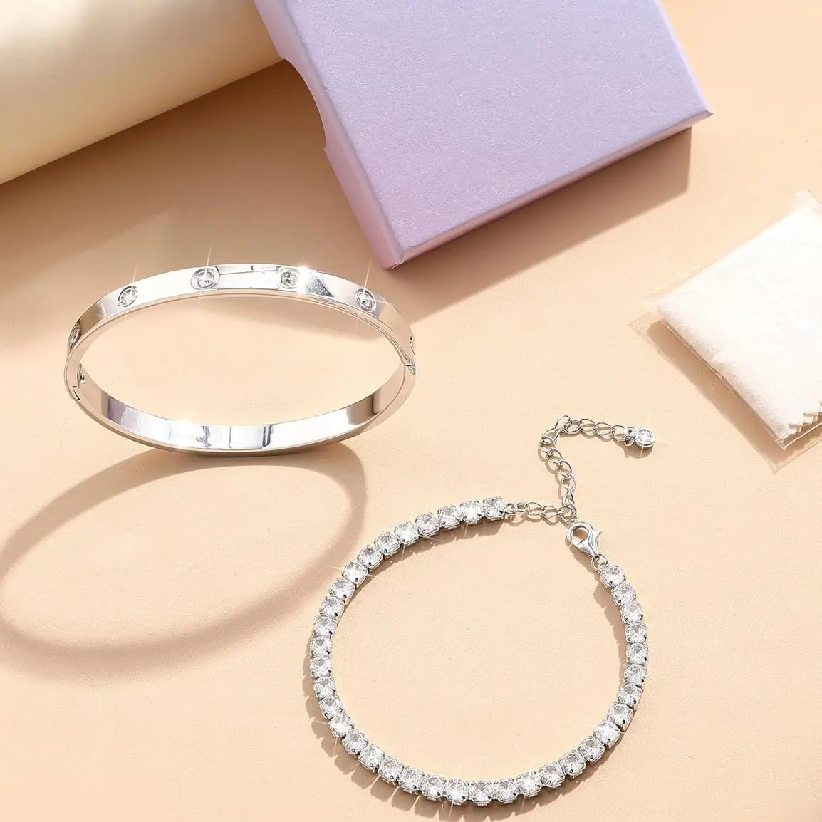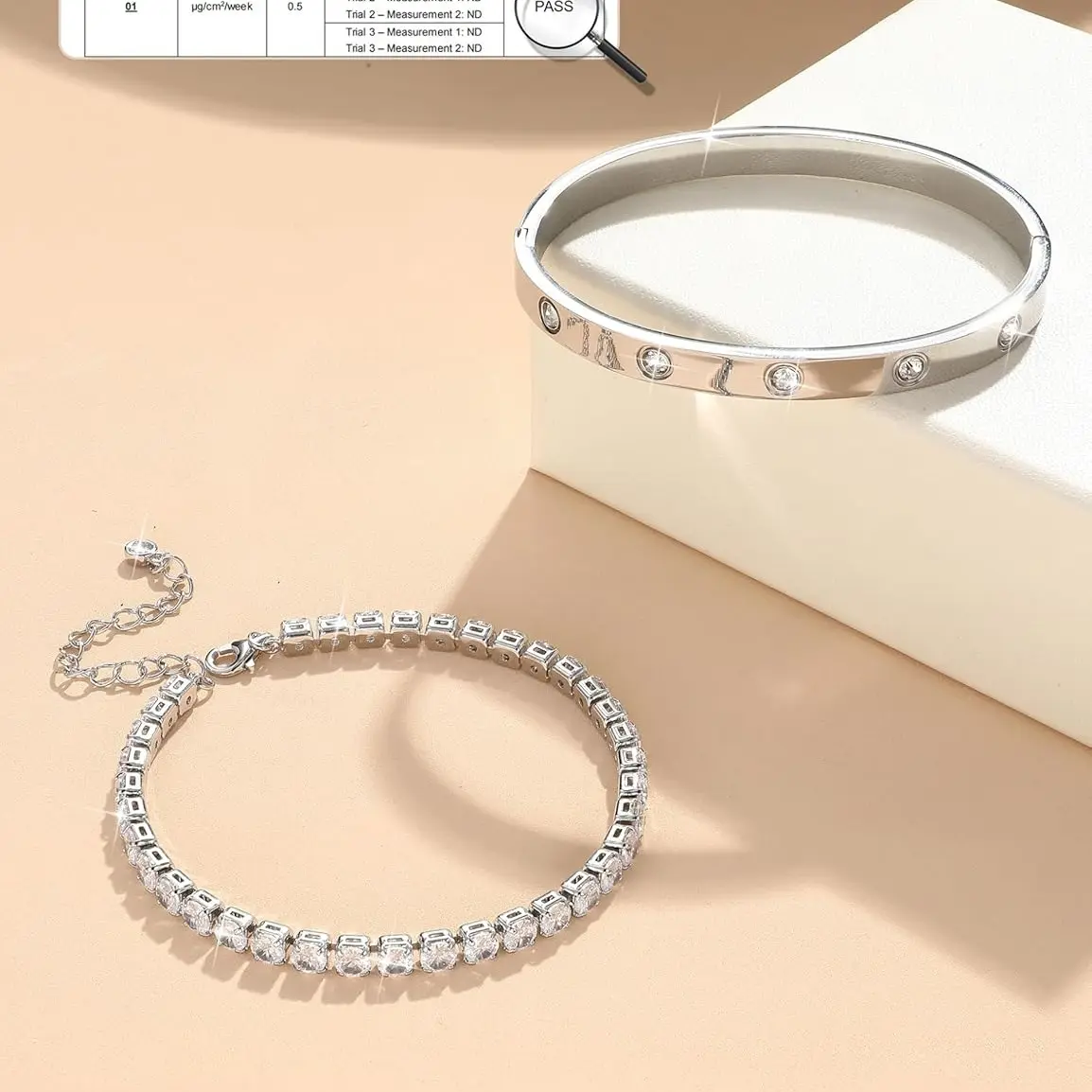 【Comfortable Fit】The minimalist gold bangle for women is available in 7 inch, and the cubic zirconia tennis bracelet is 6.5 inch with 2 inch extension.