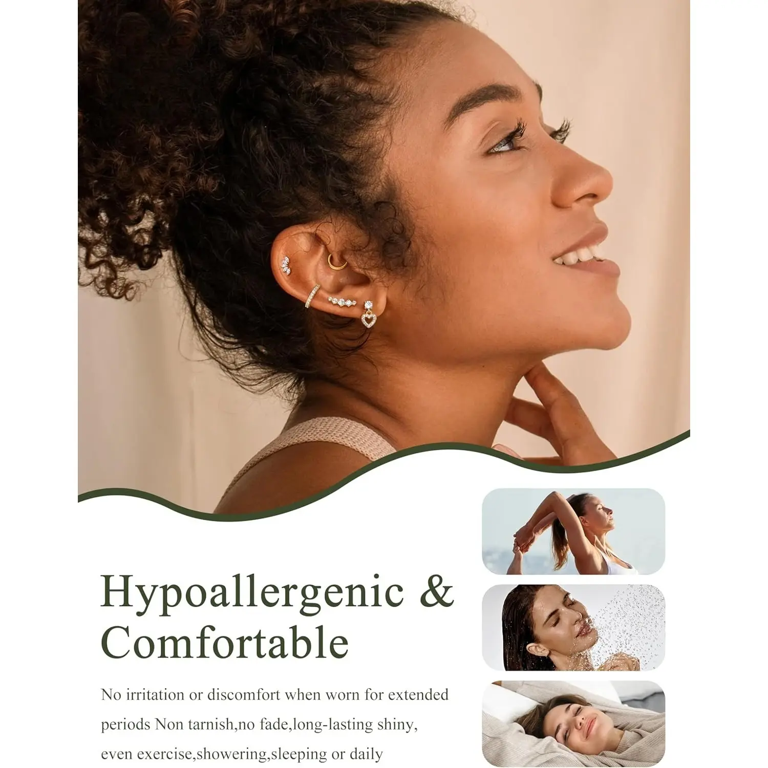 2. 【Hypoallergenic Earrings for Women Flat Back】--316L Stainless steel earrings,lead & nickel free,flat back hypoallergenic surgical steel earrings for sensitive ears,14K gold-plated plated,gold cartilage earring,non tarnish,durable,ensuring a long-lasting wearing experience.5A cubic zirconia inlaid,add more brilliance to your ear look