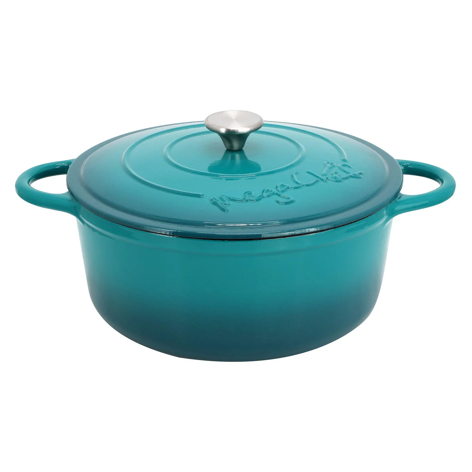 Whether you're simmering hearty stews or baking artisanal breads, the MegaChef 6.35 Quart Round Enameled Cast Iron Dutch Oven has you covered. Its self-basting lid locks in flavors, ensuring moist and succulent dishes, while the light blue enameled finish adds a touch of elegance to any kitchen. From MegaChef.