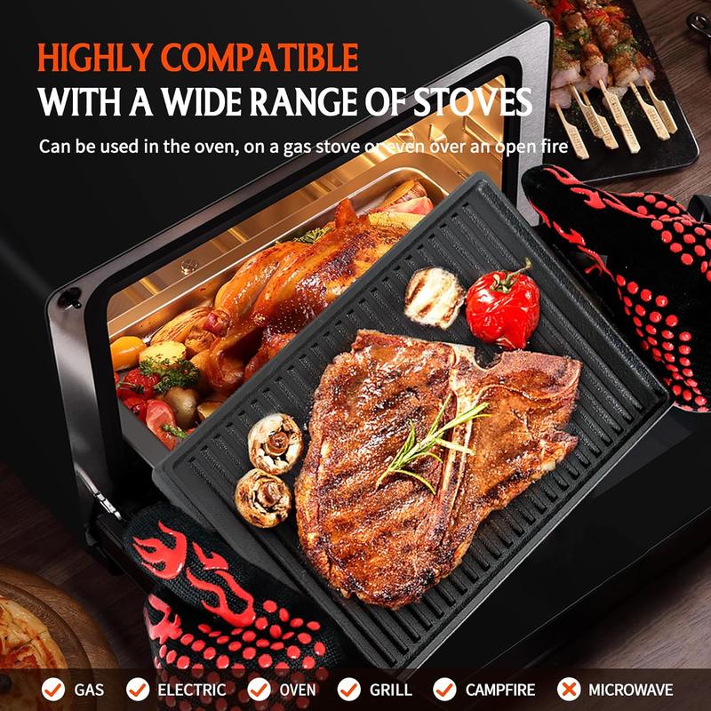 ·HEALTHY COOKING: When using our cast iron grill plate, trace amounts of iron are naturally released into your food, increasing mineral intake and promoting a healthier diet.