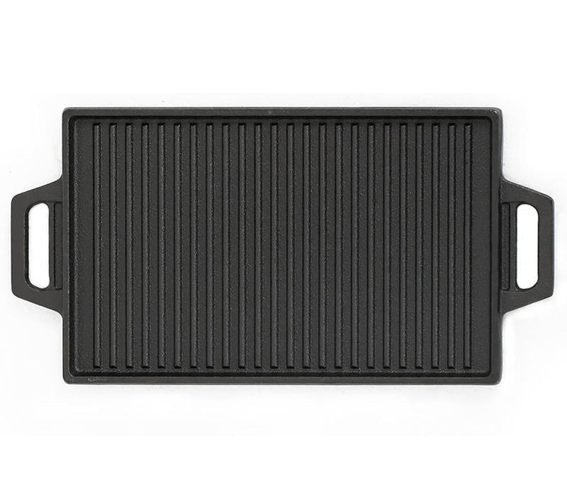 ·PREMIUM QUALITY: Our cast iron grill plate reversible griddle is crafted from high-quality cast iron, ensuring durability and excellent heat retention. It is suitable for gas stoves, ovens, and open flames