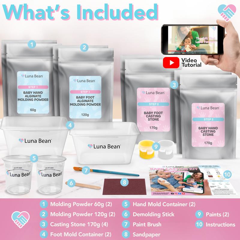 Introducing the Luna Bean Baby 5pc Hand & Foot Casting Kit – a safe and heartwarming way to preserve your baby's tiniest features in stunning 3D.