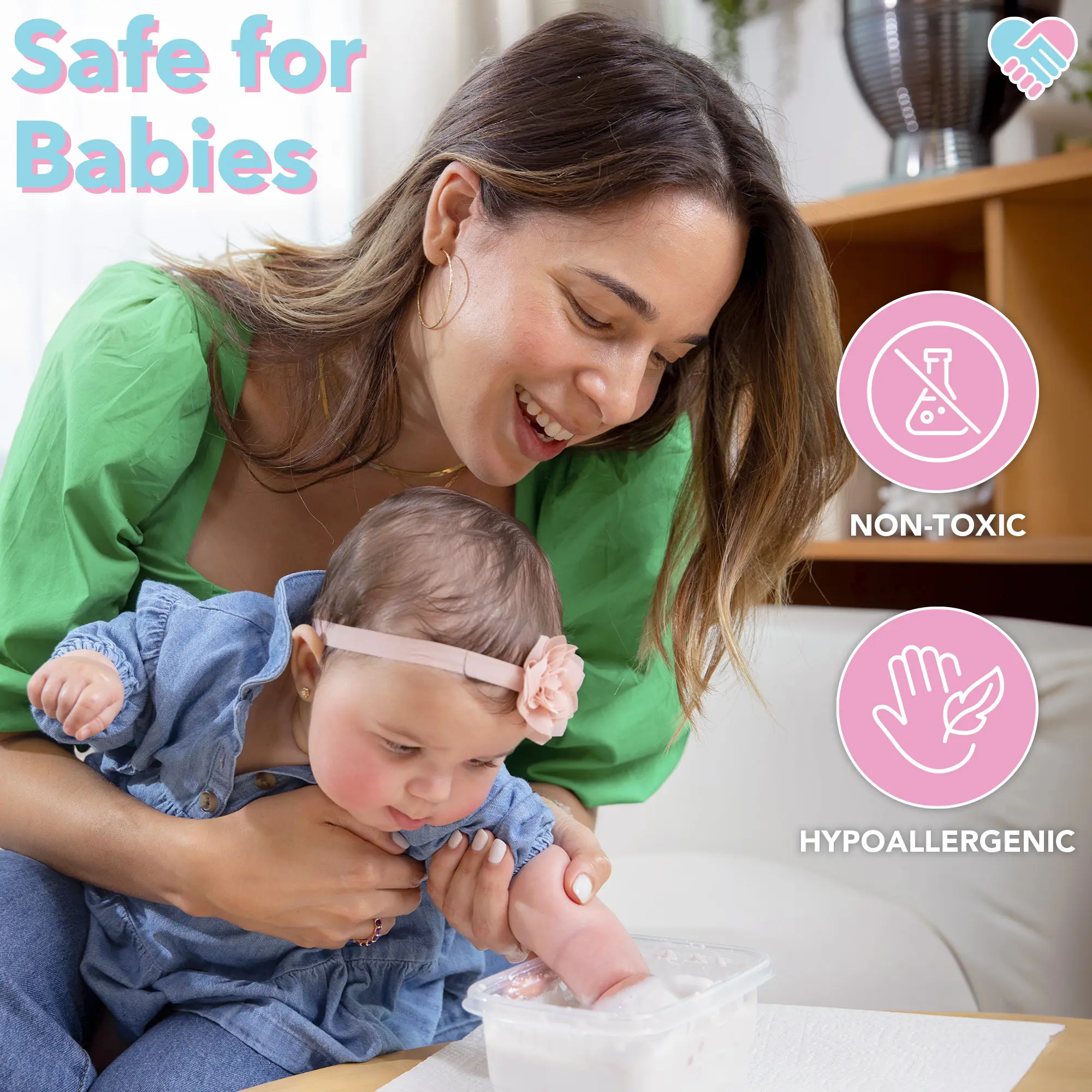 ·Made for sensitive skin, the kit uses non-toxic, hypoallergenic alginate. Gentle and safe for newborns and babies up to 9 months old.
