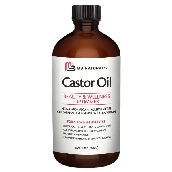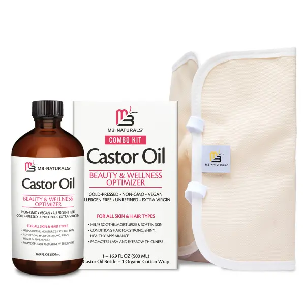 5. M3 Pure Castor Oil Pack Kit - Large Hexane Free Cold Pressed Castor Oil in Glass Bottle Plus Adjustable and Reusable Organic Cotton Castor Oil Wrap Kit