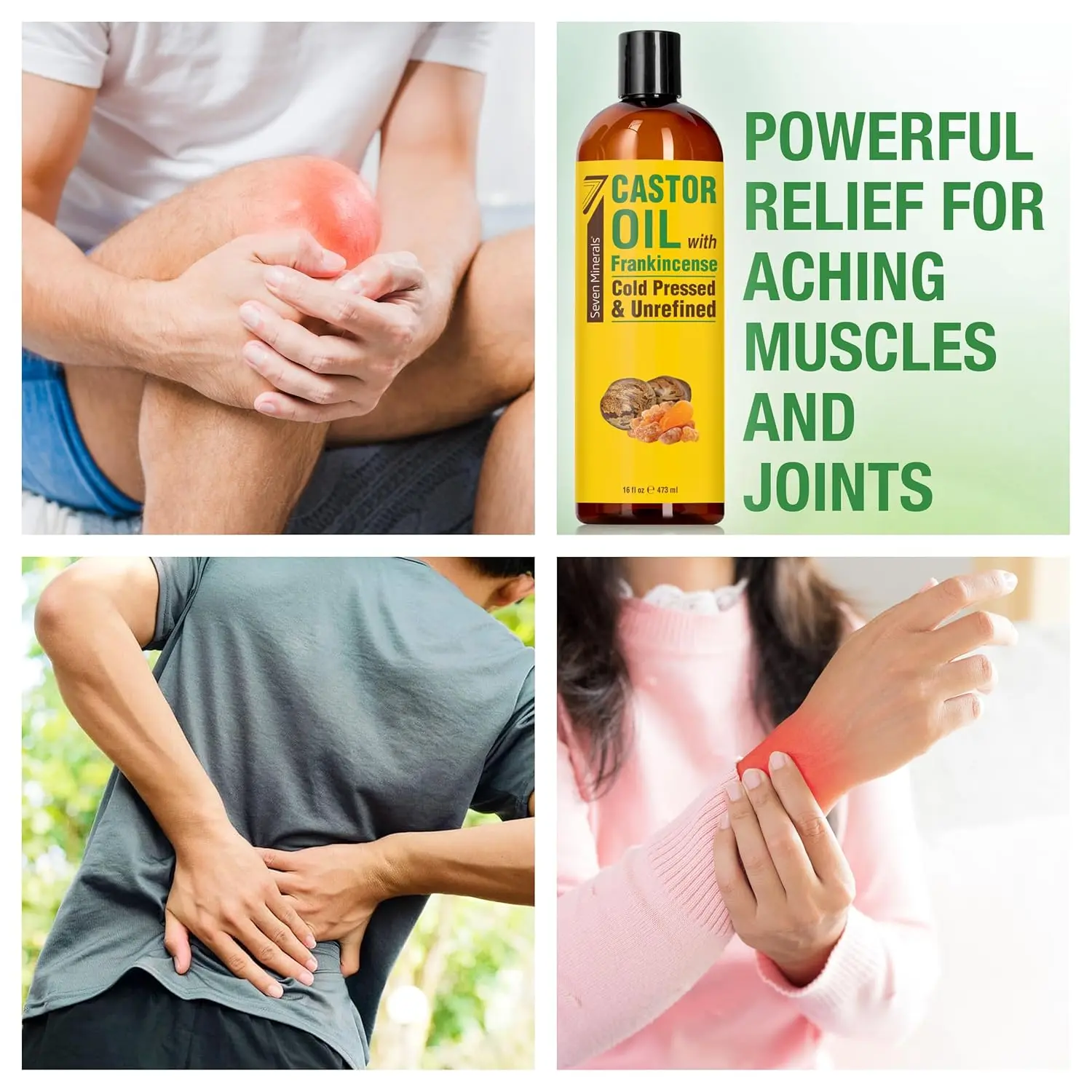 ·THE PAIN RELIEF YOU’VE BEEN SEARCHING FOR - Our powerful combination of castor and frankincense penetrates deeply to soothe achy joints & muscles, reduce inflammation, and promote relaxation, providing effective, chemical-free comfort.