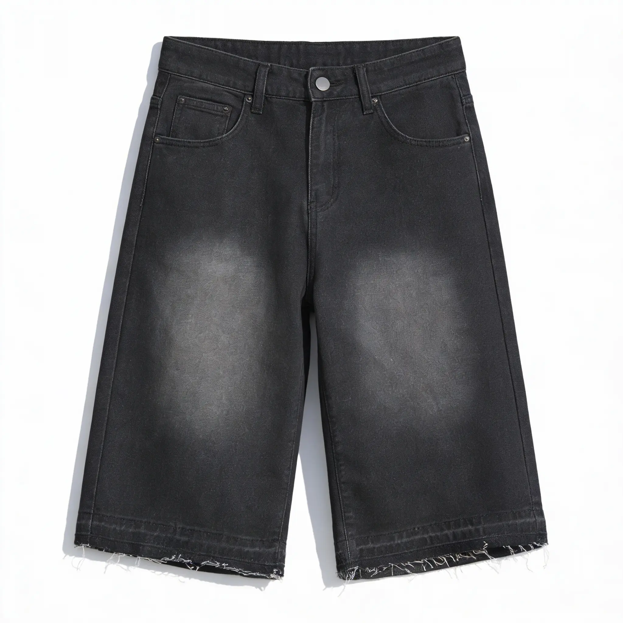 ·Mid waist, zipper closure, raw hem, loose fit, casual denim shorts