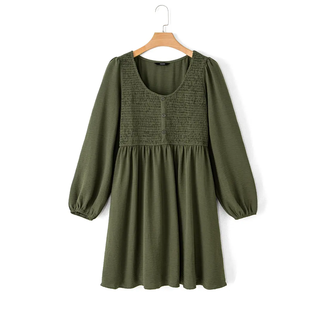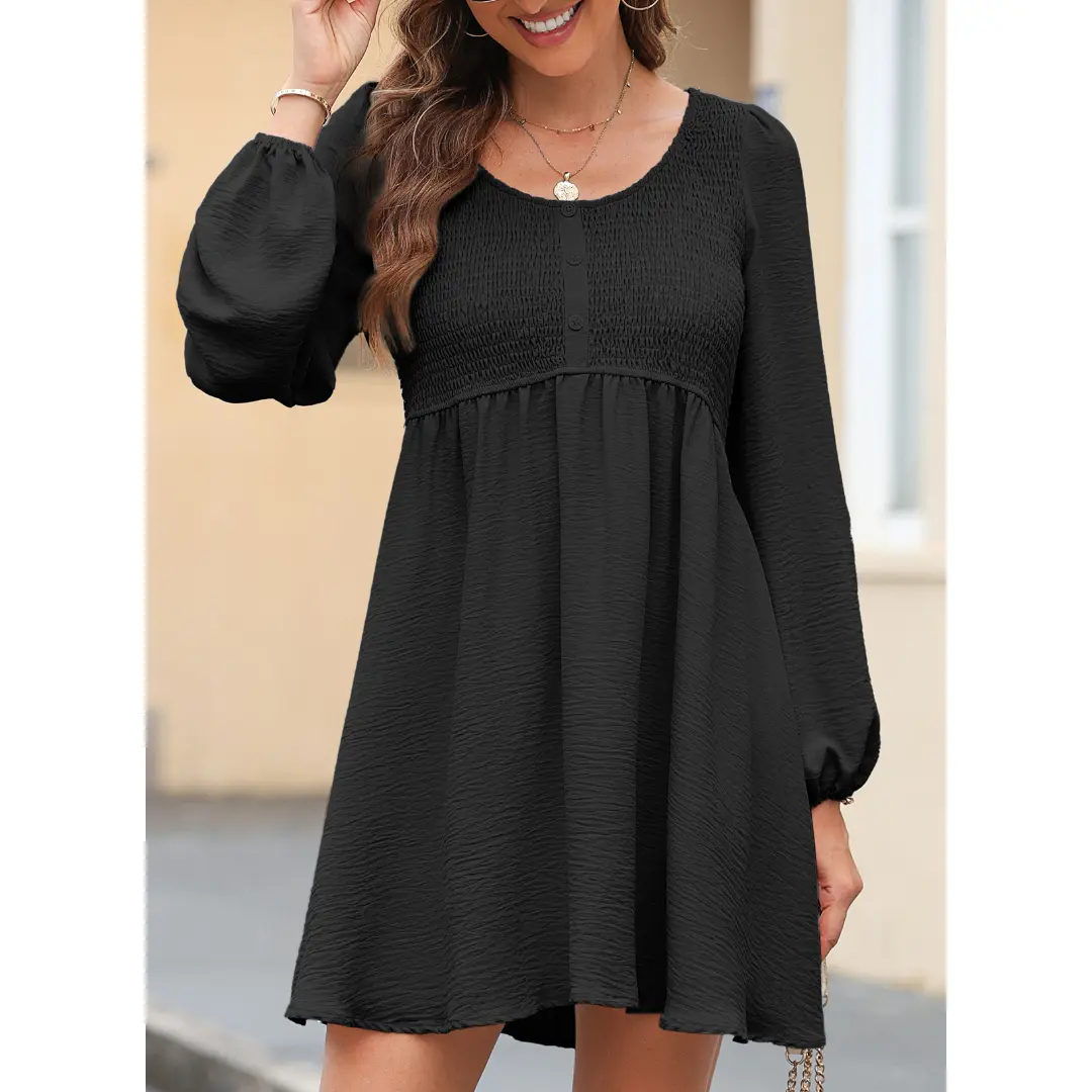 Classic Features: This long sleeve dress showcases classic crewneck and decorative button design, complemented by smocked detail and empire waist. The A-line hem of swing mini dress add a chic and elegant touch, making it a must-have for wardrobe.