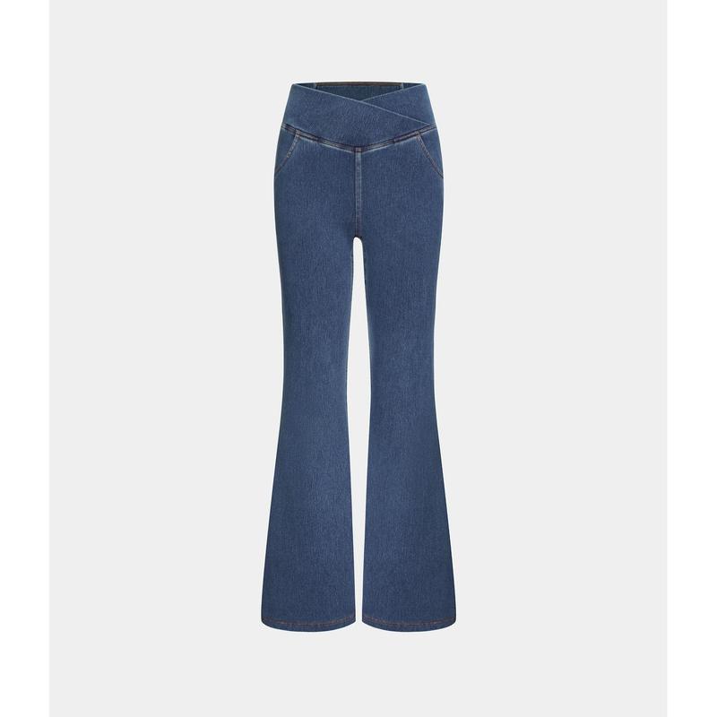 ·Features: High waist designs that offer support & comfort, without sacrificing on style. A crossover design for a simple yet stylish touch. Featuring two side and two back pockets for storing your essentials such as credit cards or other small items when you're on the go. Denim gives you stylish comfort in a jean-textured look. Washed-out designs for a casual yet edgy look. The flared design brings retro vibes for a fun and timeless look. Four-way stretch fabric offers ease of movement and durable wearability.