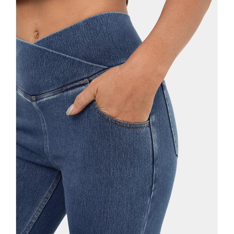 Halara Flex High Waisted Crossover Pocket Washed Stretchy Knit Casual Super Flare Jeans #TikTokShopHolidayHaul