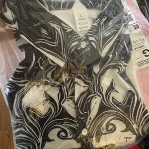 “This black/white baroque shirt hits DIFFERENT — the bold swirl print makes it perfect for nights out and statement fits 🔥 #OOTD #RetroChic”