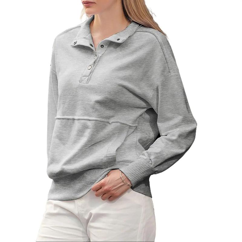 Long sleeves, button-down V-neck, and a relaxed fit make this henley shirt-like top versatile. The ribbed design adds a trendy touch. Itâs a casual sweatshirt for women, suitable for everyday wear. Pair it with jeans, pants, or sneakers for a stylish look. Effortlessly pair it with various outfits.