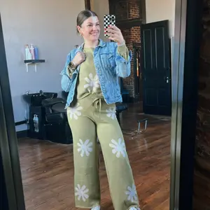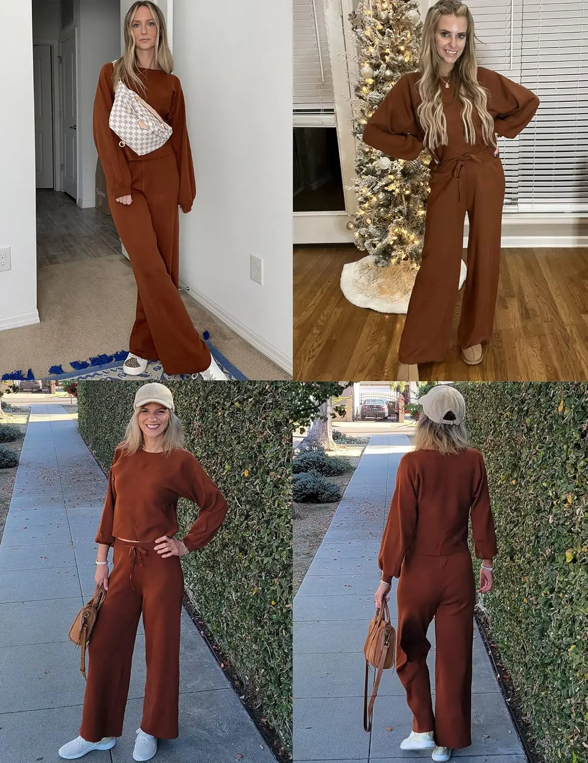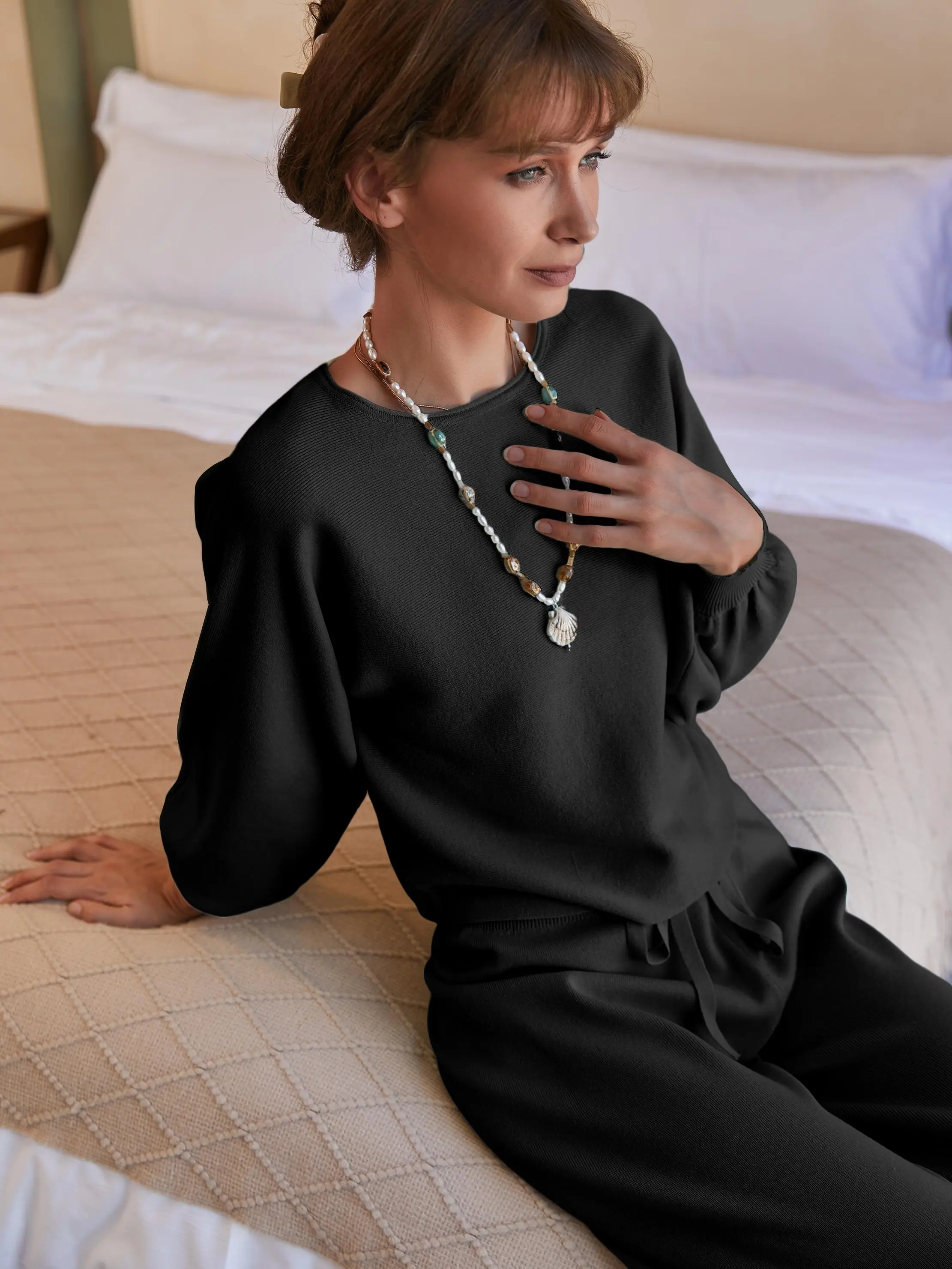 ·2 Piece Sets for Women Knit: ide Crew Neck Tops + Long Wide Pants. Pair this off shoulder top with the Cozy Knit Wide Pants for the ultimate loungewear set. Make you feel comfy all day long.