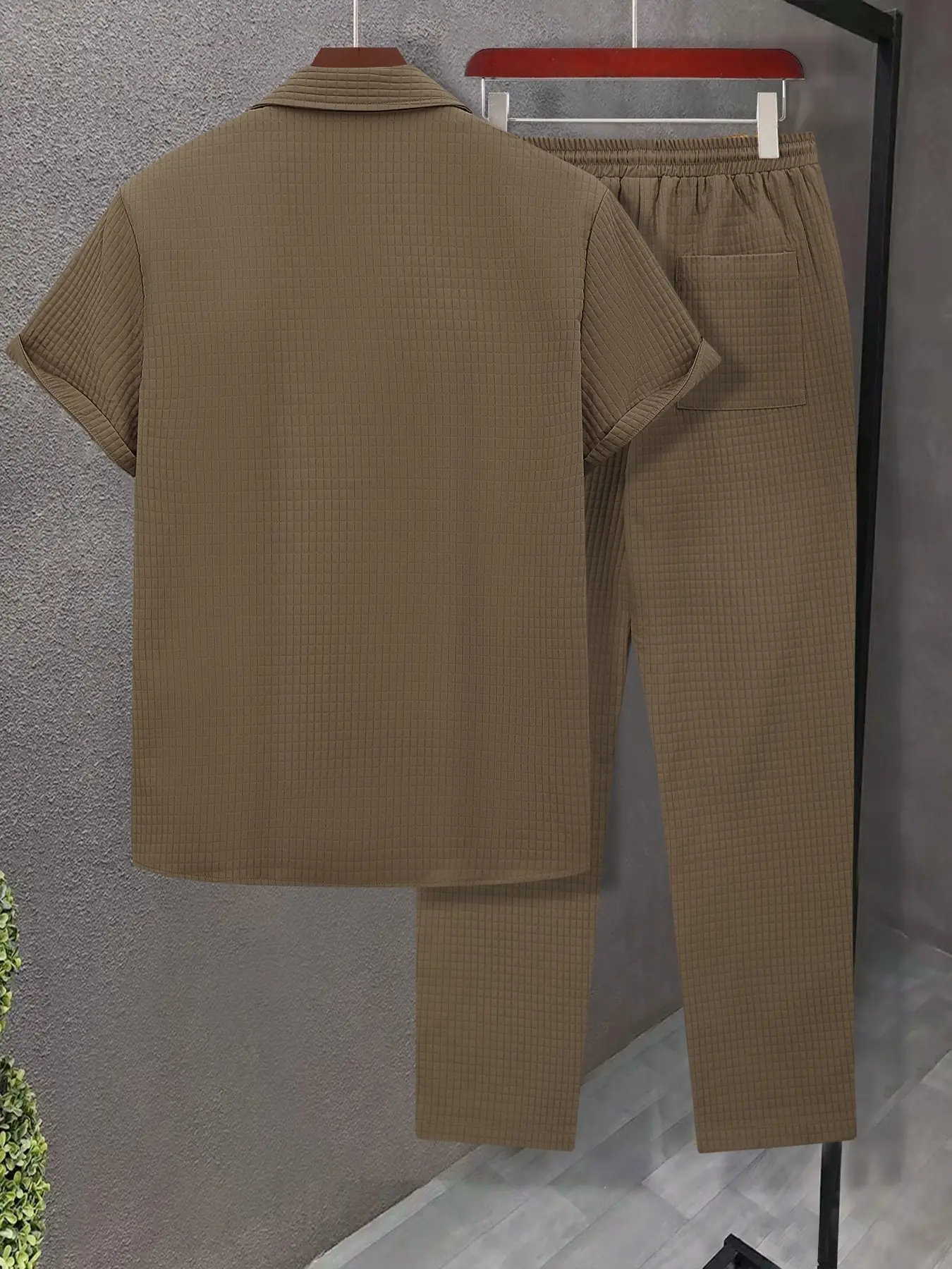 Men's Solid Button Front Shirt & Drawstring Waist Pants Set, Regular Fit Casual Short Sleeve Collared Top & Pocket Trousers, Men's Summer Clothes #mensfashion #clothing #mensstyle #mensoutfit #mensclothes #officewear #menssweatpants #mensdresspants #mensjoggersets #womenssweatshirtset