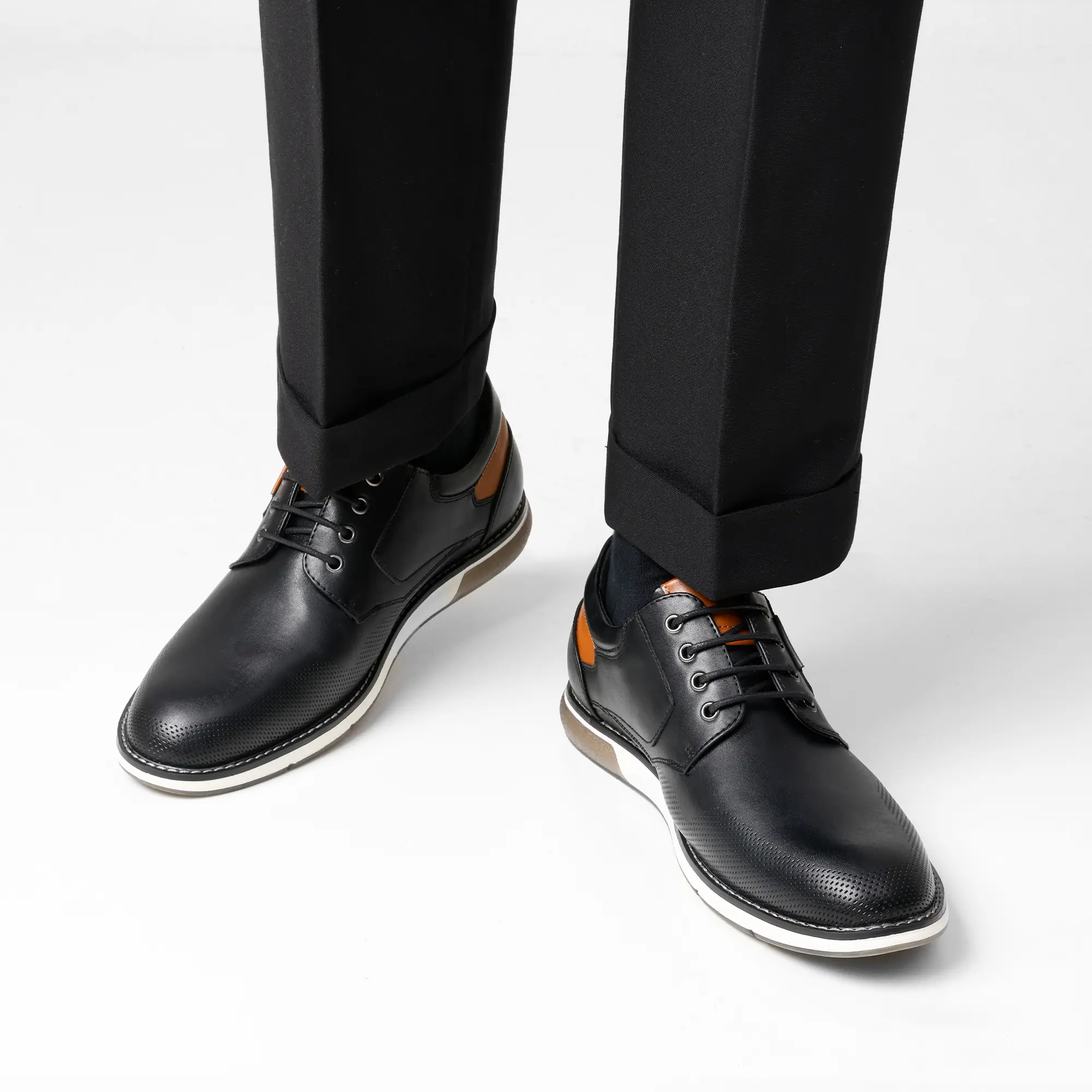 These men's casual Oxfords fuse classic refinement with a laid-back vibe. Trendy and breathable perforations keep your look cool and chic. The durable TPR outsole offers stability whether it’s busy days or heading to the dance floors on off-duty days. The cushioned insoles and soft lining ensure comfort and support. Dress up or down—pairing perfectly with pants or jeans.