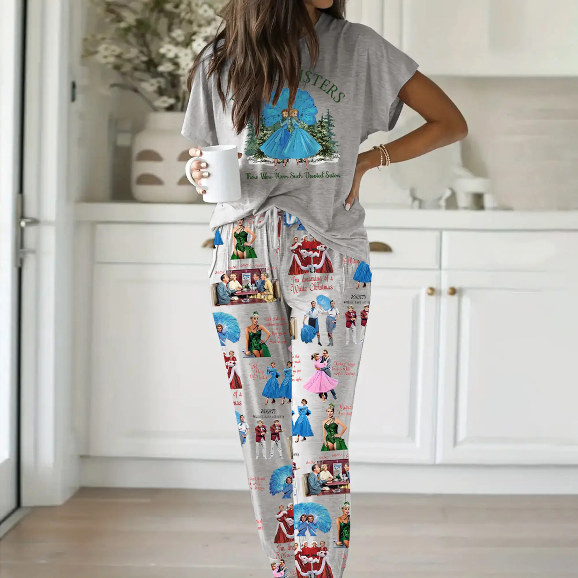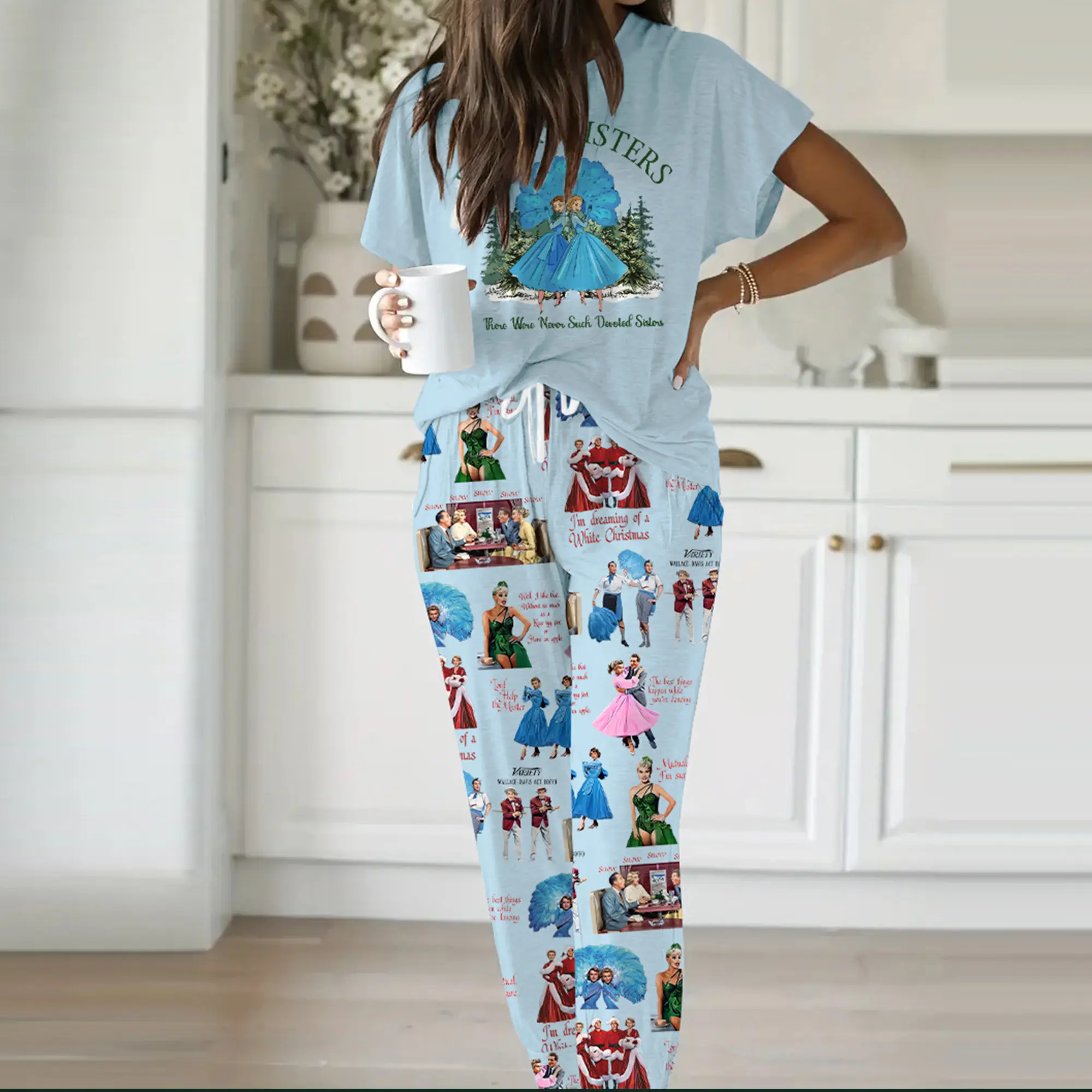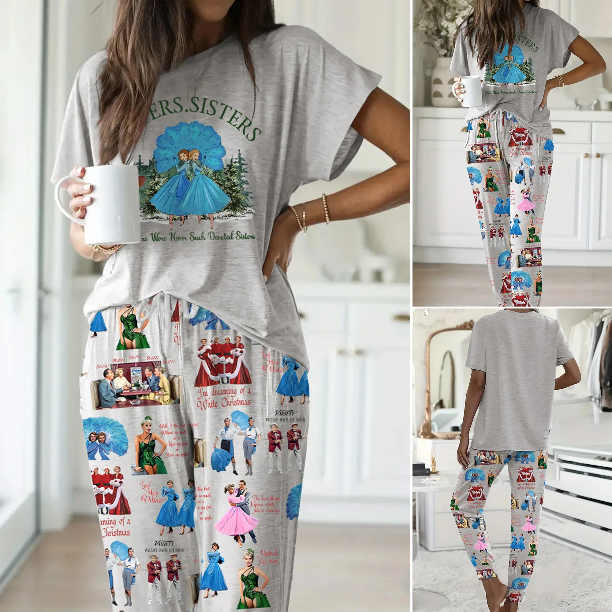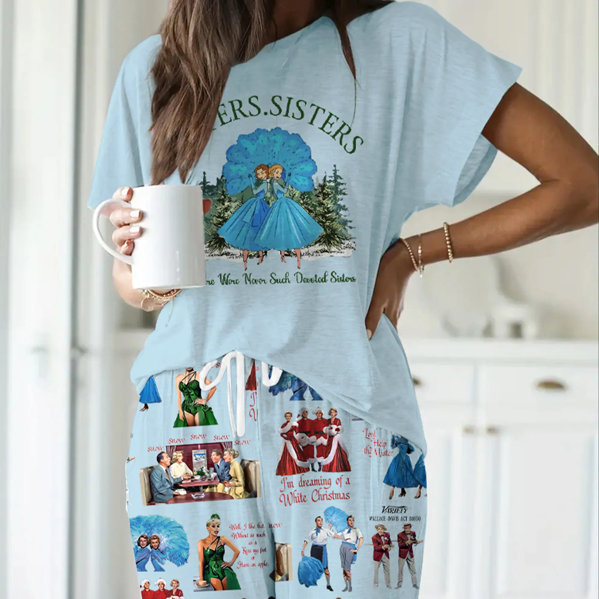 5. White Christmas Sisters Casual Pajama Set For Women - SHESHOW