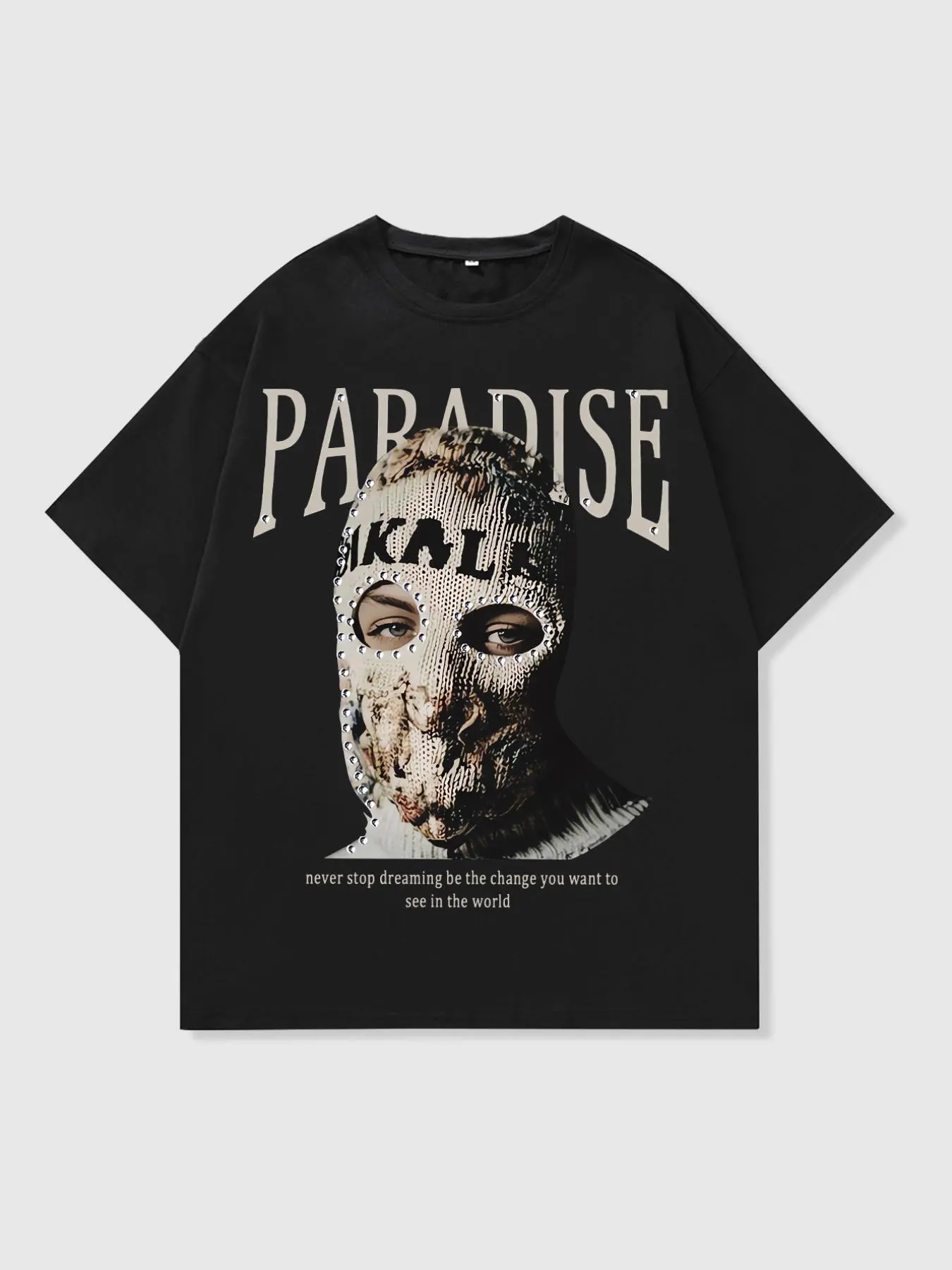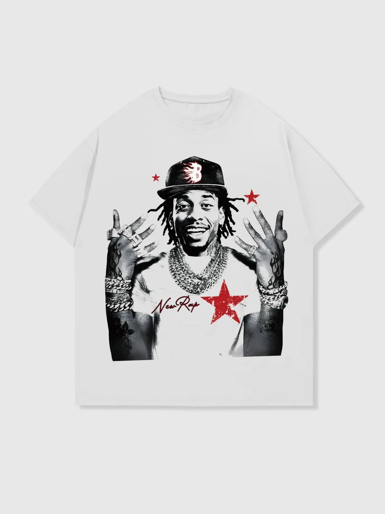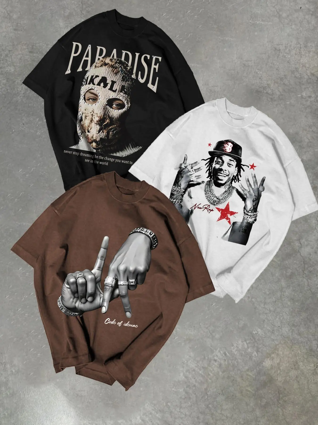 5. Men's Regular Fit Hand & Star Print Short Sleeve Graphic Tee, Casual Street Round Neck T-shirt for Summer, Men's Top for Daily Wear, Tropical