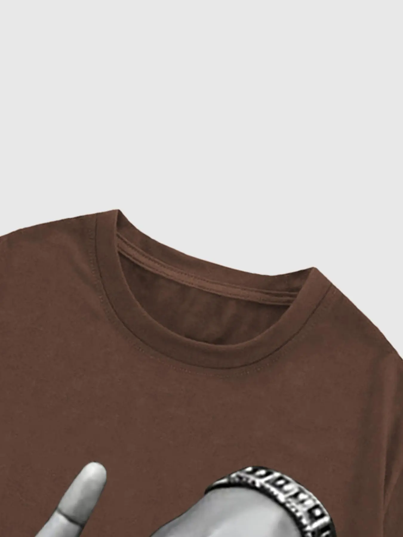 Men's Regular Fit Hand & Star Print Short Sleeve Graphic Tee, Casual Street Round Neck T-shirt for Summer, Men's Top for Daily Wear, Tropical