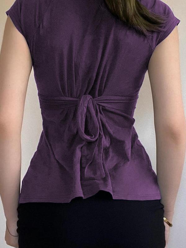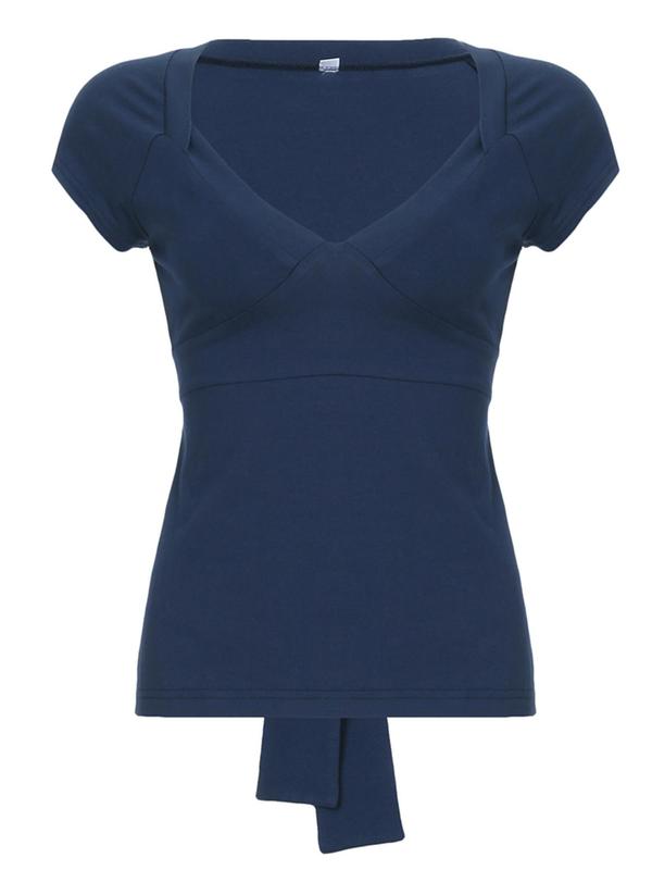 It fits so well! I like the tie in the back, it makes the shirt hug me and the whole look is more flattering. I liked this so much I bought it in blue too lol.