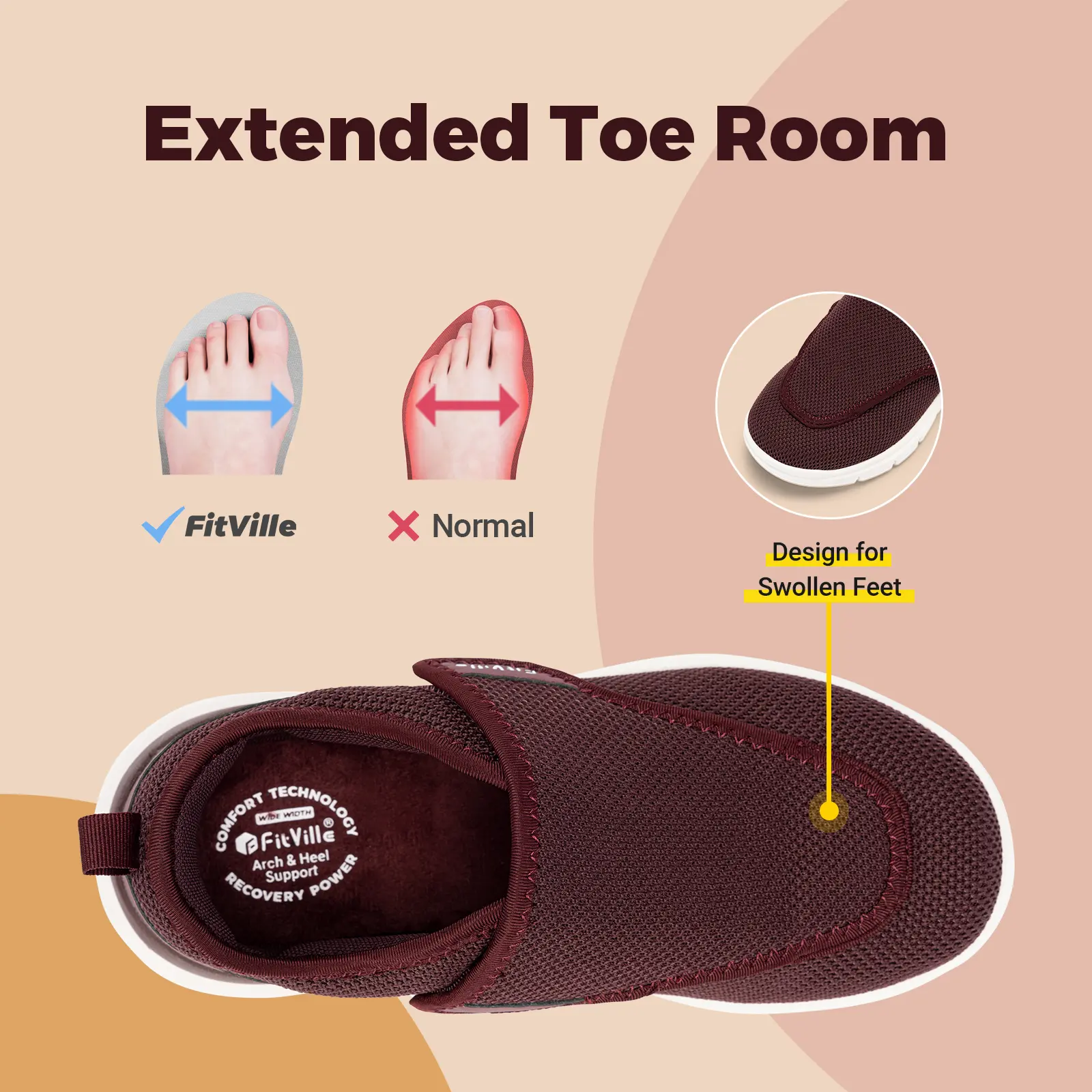 Worry not about traction; our solid rubber outsole ensures you stay steady on your feet. It's time to pamper your feet with FitVille EasyTop Diabetic Shoes – where comfort meets style, and every step is a delight.
