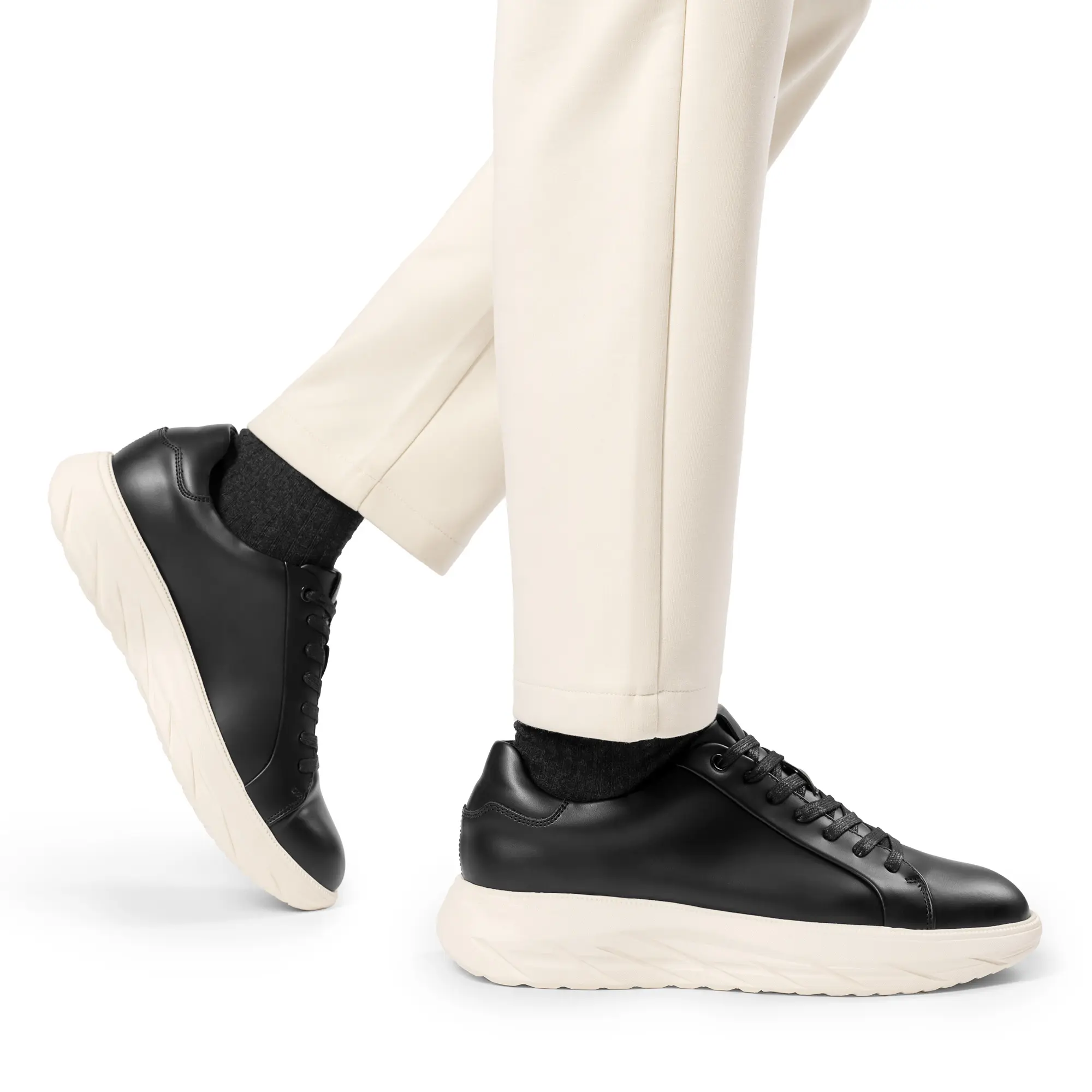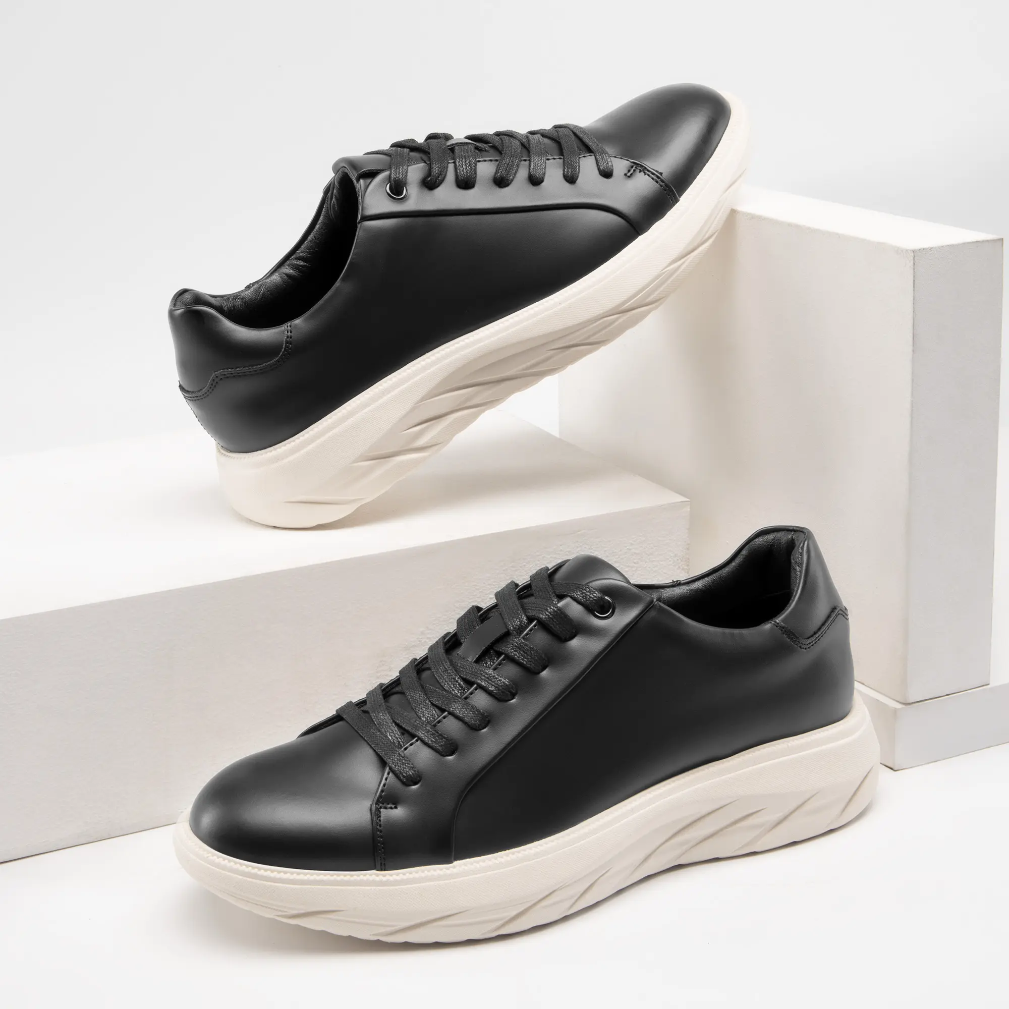 ·Textured Upper: Crafted with vegan leather, these men's sneakers are not only stylish but also offer softness, ensuring comfort and durability. These fashion sneakers are designed to make you look and feel good.