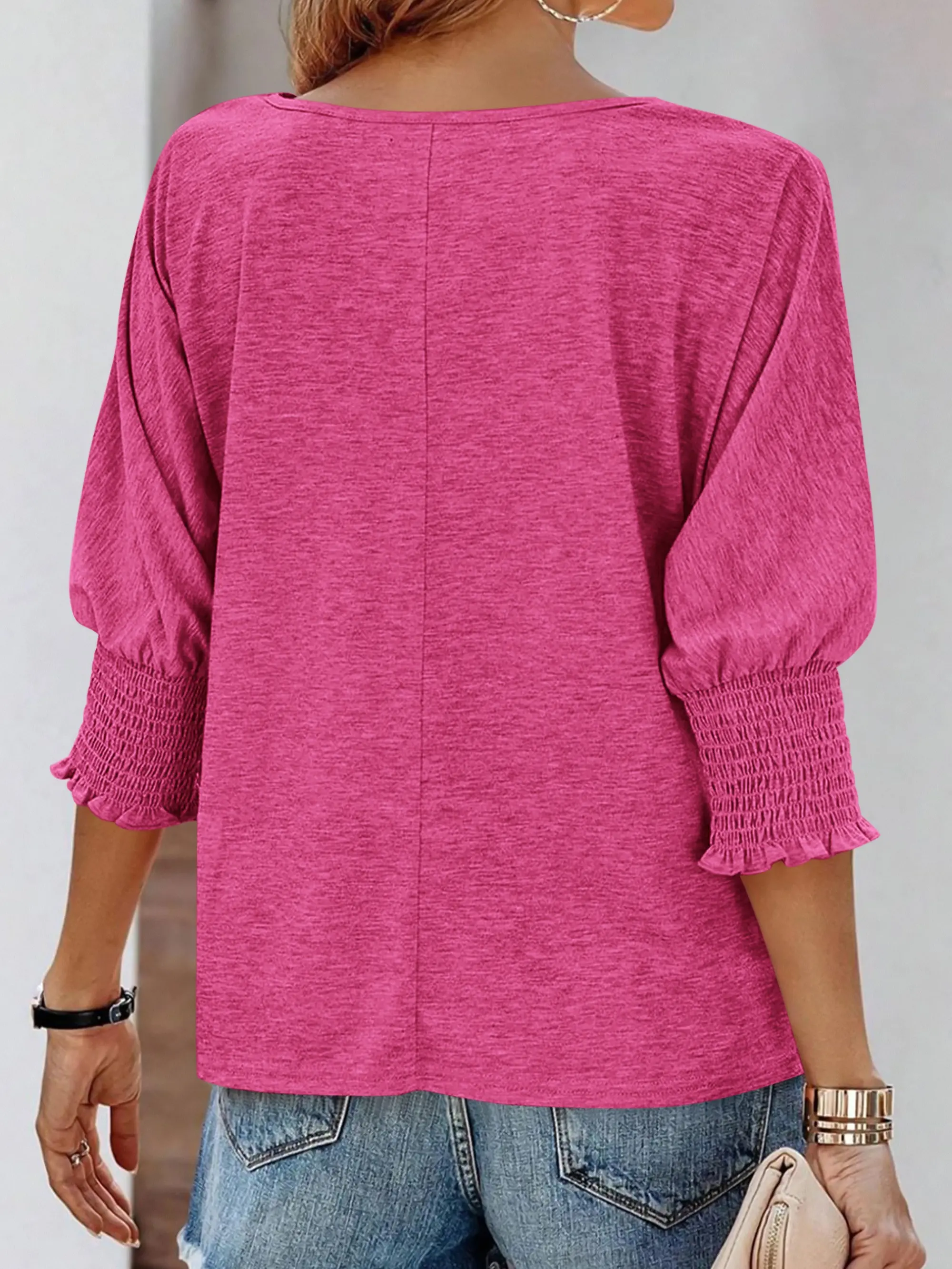 I love this top by BTFBM! It is perfect to wear to work or to go out. The smocked sleeves give it an elevated look. It's long enough in the back I can wear my leggings if I want, and dressy enough I can wear slacks to work. The fabric is super soft. 5/5 stars