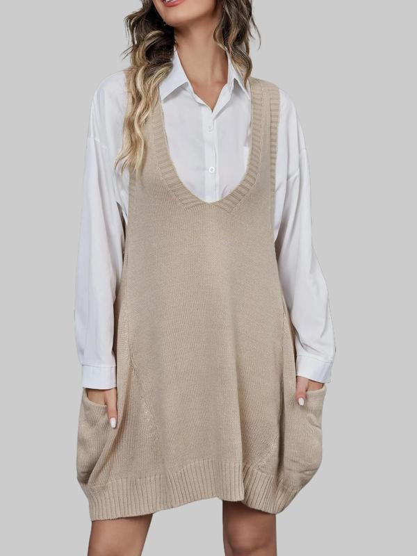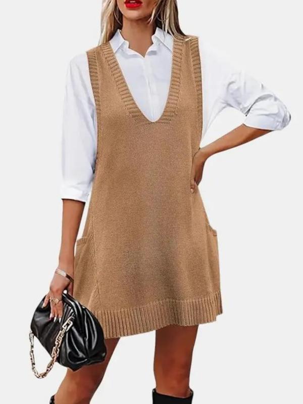 ·Features: Deep V Neck Sweaters Vest, Sleeveless Sweaters Dress, Cable Knit Tank Top, Loose Fit, Pullover Tops. Swing a line hem, Ribbed trim around the neck, cuffs and hemline, lightweight and easy to wear on and take off. Two side pockets for easy storage of your small items such as: keys, lipstick, iphone, etc.