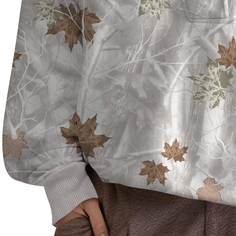 ·Design:Crew neck, long sleeve, ribbed knit cuffs and hem, all-over maple leaf print, oversized loose fit, Y2K-inspired pullover style without pockets. Simple yet stylish for daily wear.