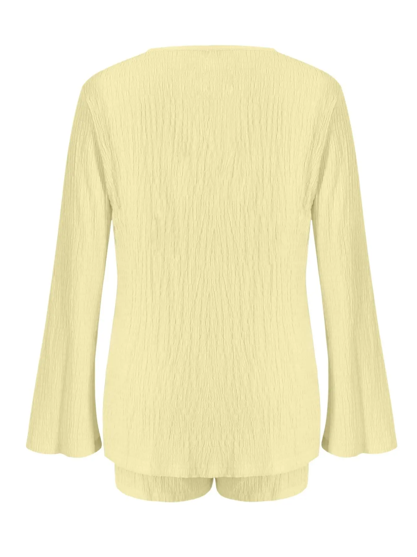 This is cute, perfect for a beach day. The material is light and gauze-y. I LOVE the top, not a huge fan of the fit of the shorts, but they're still wearable. It's that kind of fit you see where it's sort of looser at the top but gets tighter toward the bottom so it gives that weird puffy effect near the belly.