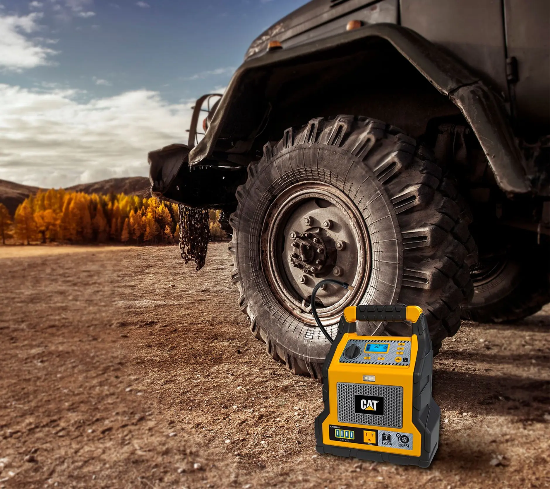 Keep your vehicle ready for anything with this CAT 3-in-1 digital power station with jump starter. Equipped with a 1200-peak amp jump starter, 120 PSI automatic compressor, and a 200W power inverter, the versatile tool is a well-outfitted gift for new drivers, commuting family members, or yourself. From CAT.