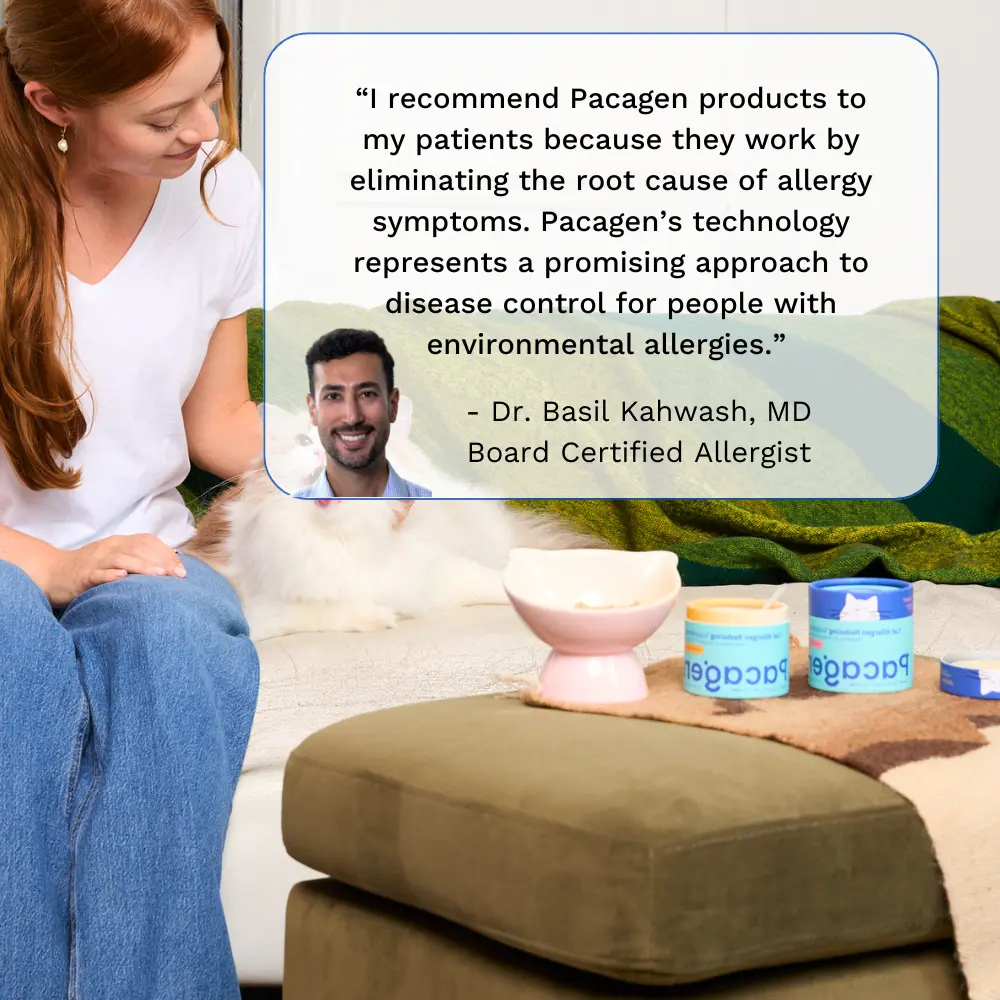 We found Pacagen! We are 2 months into their products and now he is able to pet, and hold his cat (he still washes hands, but it's nothing like before). No more sleepless nights of sniffles and puffy red eyes, etc.