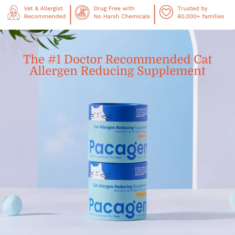 I was devastated to learn that I had a cat allergy after brought home our little tabby, so I was excited but skeptical about Pacagen. But after about a month of use, I am able to comfortably cuddle up with our cat without issue! He seems to like the taste, no trouble there. I am so thankful that something like this exists!