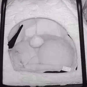 Cute but the main selling point is the large opening so my timid feral doesn't feel trapped. Had a funny smell when it arrived but was fine after airing out a couple of days and he sleeps in it very cozily. Screenshot of Ring nighttime footage.