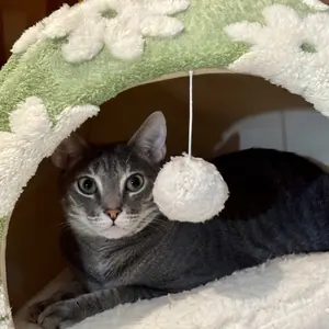 Cheeto also loves his green flower cat tent! He weighs 13lbs, and is a pretty lanky boy so this size is perfect for him. Thank you Lesure and Jess!!