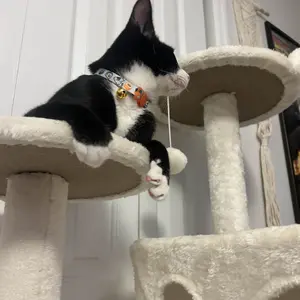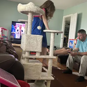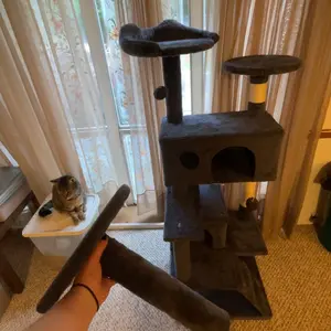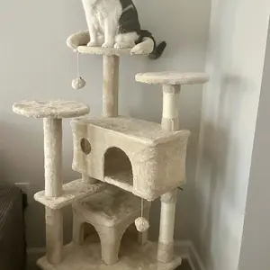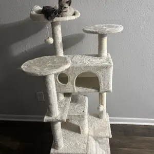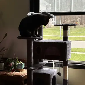 Our sweet “Beeba” absolutely loves this cat tree. As you can see in the pics she is very proud of her tree and very photogenic as well. She was so excited to posed for all of the pictures. We absolutely recommend this product. Hopefully your kitty will love it as much as our Beeba does ❤️